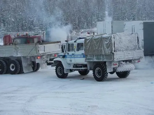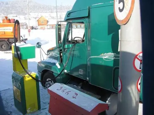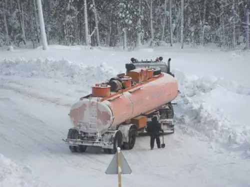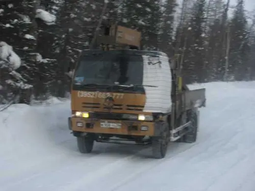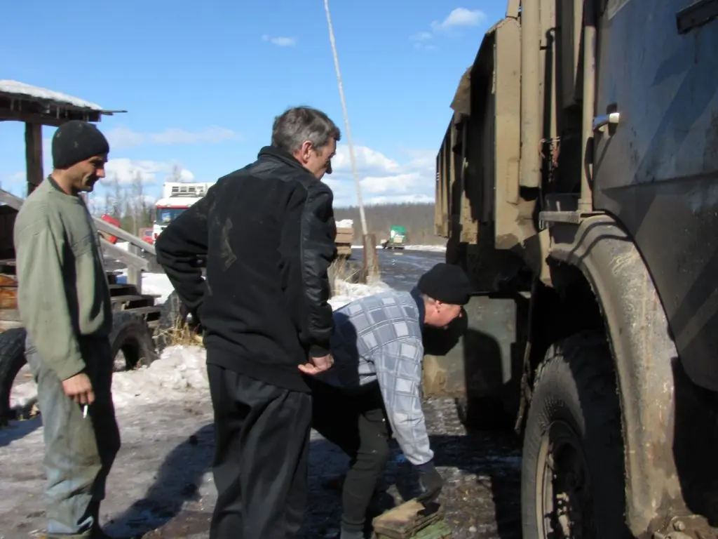 Ремонт в морозы — хуже не придумаешь. Хорошо автономное отопление, на ночь опускаем кабину. Муж несколько раз разговаривал с водителями, которые так же ремонтировались на морозе, в машине у них топилась дровами буржуйка. Обиделась на него, что не сказал мне, и я не сняла на фотокамеру. Который раз убеждаемся, что запасные детали стали выпускать некачественные. Только купили, вновь крошатся, ломаются. Даже камеры на морозе деревенеют и трескаются. Морозы — самый тяжелый период, тяжело людям, тяжело технике. Выходя на улицу можно определить температуру воздуха. Надо просто подуть, если воздух шелестит как шелк, значит ниже сорока. Когда, наконец, температура поднимается до 35, кажется, что стало тепло. Радуешься этому, да и машина начинает резвее идти. Почти всю зиму машины не глушатся. Огромная потеря топлива на стоянках, в ожидании разгрузки-погрузки. Актированные дни из-за морозов бывают по несколько дней. Как-то смотрели по ТV о канадских дальнобойщиках. Там, если машины не разгружаются по какой-либо причине, простой оплачивается. Нашим, российским дальнобойщикам об этом можно только мечтать. Все затраты от простоев несут сами водители. А это большой минус от заработанных денег. Никому нет дела до частников. И еще жалко, что на зимнике нет заправочных пунктов. Есть, но только ведомственные. На «левый» ГСМ надежда плохая. Приходится заправляться в У.Куте под завязку, чтобы хватило туда и обратно, а это около 2 тыс.км. и больше. Затраты топлива большие: подъемы, спуски, простои. Вместо груза возим лишние тонны топлива.