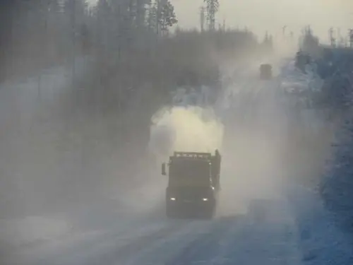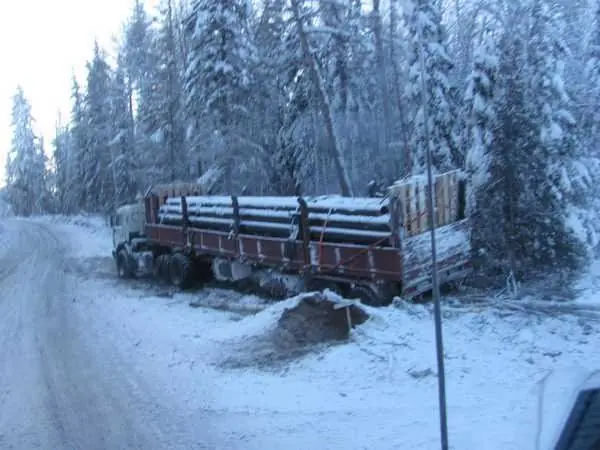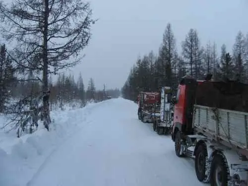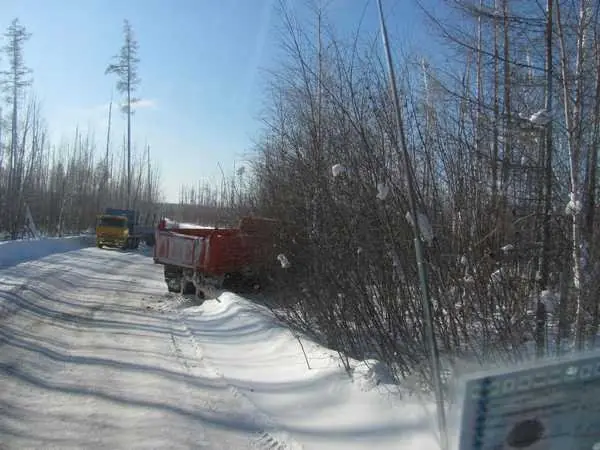 Началась работа по прокладке газопровода. Привлечено много машин. В основном из равнинных регионов. Зимник для них непривычный и опасный. Хотя стоят морозы, и дорога держит крепко, цепи почти не снимают. К сожалению, новички не признают правило о том, что нужно пропускать груженые машины. Где-то дорога позволяет проезд двум машинам одновременно, но на узком грейдере разъезд становился рискованным. Я как-то посчитала (а что мне еще делать?) за 60 км. остановились и дали нам проехать по грейдеру всего четыре машины. Из десятков встречных! И поэтому, кто ездит давно, знаком с дорогой, пропускают пустые машины сами. От греха подальше.