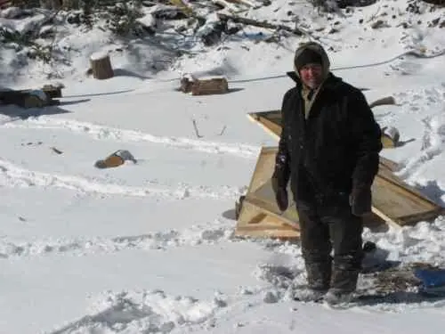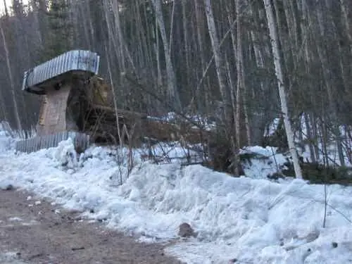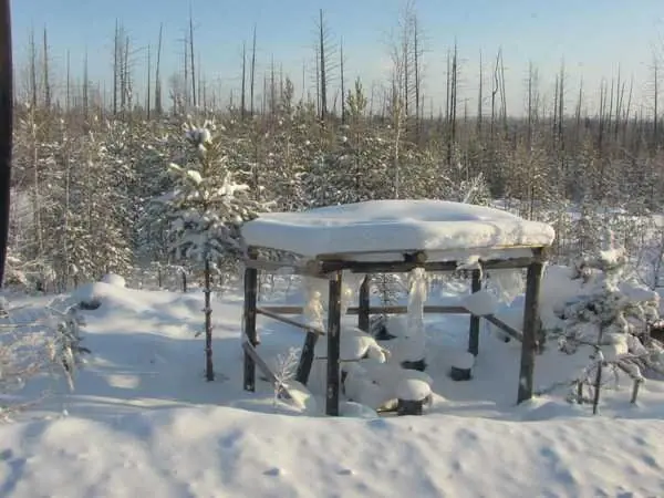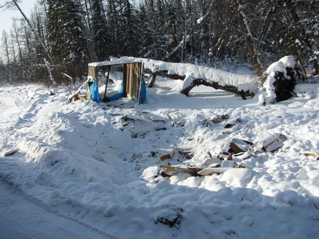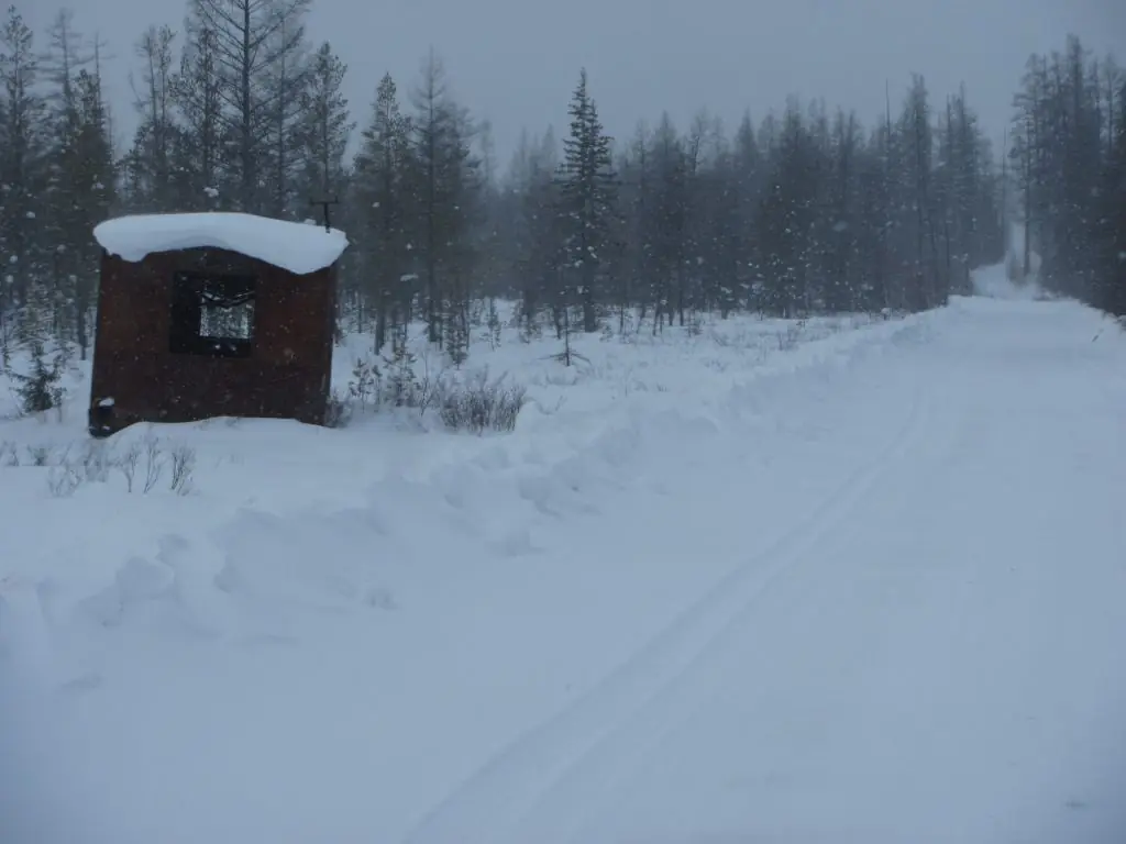 Небольшая фотоколлаж. Много пропущенных интересных моментов, именно в это время у меня куда-то прячется фотоаппарат, или на ходу не успеваю снять. И никогда не фотографирую, где происходят трагедии. Считаю, это не этично. Зимовье, как сказочный домик. Летом работали геологи или кто-то оставался на зимнике — у дороги печь для выпечки хлеба.