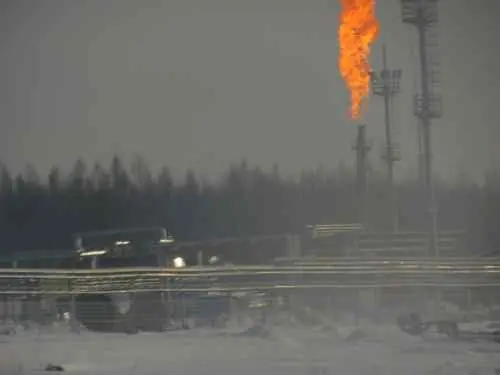 На выходе из зимника в Таас-Юрях в Якутии. Люблю эту площадку. Часто последним рейсом, когда практически дороги уже нет, а есть реальная угроза остаться на зимнике, увидев издали горящий факел от сжигаемого газа, выйдя на площадку, чувствовали такое облегчение, которое не передать словами.
