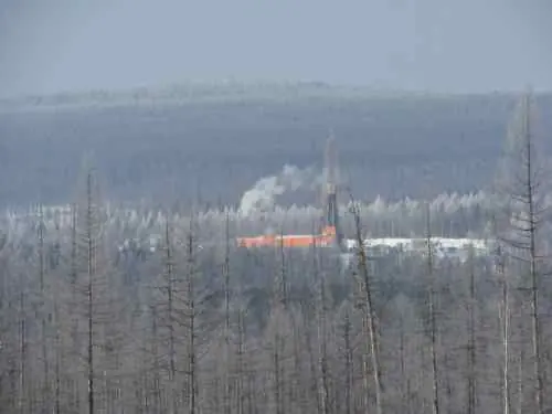 Тайга изрешечена профилями. Мне пришлось лететь на вертолете над теми местами, надо сказать сверху смотрится по-другому. Петляет по тайге зимник, чернеют от подсыпки подъемы. Просеки тонкими и ровными паутинками от горизонта до горизонта расходятся по тайге. Местами сгоревшие участки. Вырубки уже не кажутся большими, но хрупкость природы очень ощутима.