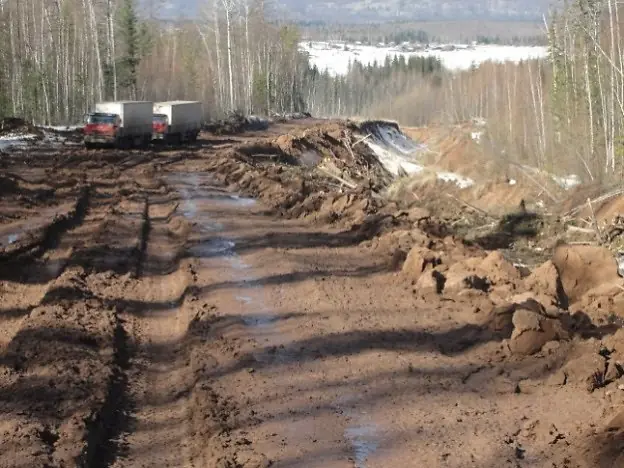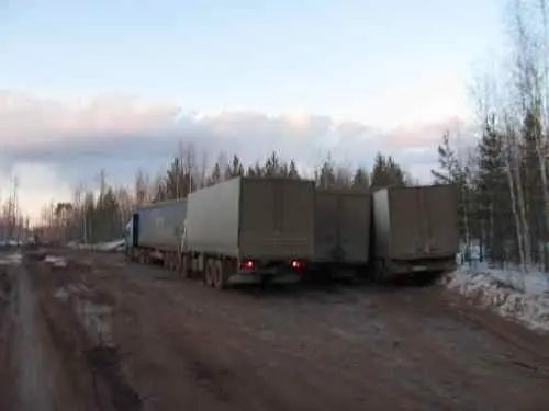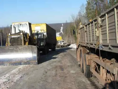 Хорошую дорогу сделали дорожники, но узкую. За зиму стала почти фронтовой, со следами съездов и падений. Только что нет воронок от взрывов. Весной сделалась еще уже и покатой по краям, с глубокой колеей, вылезти из которой становилось днем все труднее. Что бы разъехаться ждали ночи, заморозка. Собирались целые колонны. А встречи двух машин с негабаритным грузом становилась опасной.
