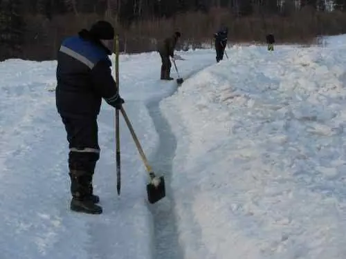 Как машина проваливаются, видела. Машин скопилось с десяток. Одна попала в яму, пытаются ему помочь. Самый нетерпеливый пошел в обход. Вроде уже почти вышел, и вдруг фонтаном брызнули снег и вода. Машина почти наполовину ушла под лед. Водитель с трудом открыл кабину. Следом на выручку поспешила другая машина, точно так же провалилась. Ну-у, все! Приехали! Теперь работы не на один час.