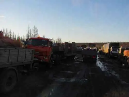 Середина марта. Надо ремонтировать машину, а я возвращаюсь домой. Заболела спина, то ли хондроз, то ли воспаление хитрости. В любом случае очень жалко, что приходится уезжать весной. Это время очень люблю. За потрясающие небо, глухарей, люблю смотреть, как просыпается природа. И что греха таить — весна это самый интересный и экстремальный период на зимнике. Весной в дороге можно та-а-кое увидеть и в та-а-кое вляпаться! Адреналина получаешь по полной программе! На год хватает. И вот от всего этого уезжаю. Муж две недели ремонтирует машину и идет в последний рейс. Снова жду звонка. И как в прошлом году идет ночами. Морозы еще доходит до 30. Но весна берет свое. Разгрузился, возвращается. Ночью звонок с Чоны. Следующий звонок через четыре дня. Спрашиваю, где он? Отвечает, что пришел на Яракту. Это всего 350 км от Чоны! А я что говорю! Были сходы, чтобы разъехаться или выйти из колеи, ждали ночи, заморозка. Стояли колонны машин.