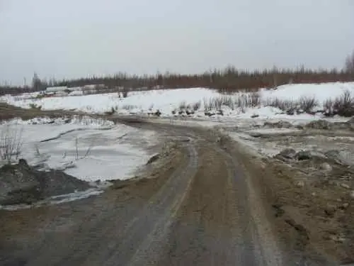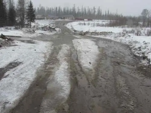 К вечеру подморозило, пошли и мы. Через 40 километров наледь. Низина залита водой, где дорога непонятно. Стоит машина, водитель чертыхается: «Где пропали, я вас жду три часа! Идите следом за мной, тут такая яма, вытаскивать вас уже будет некому». Вывел нас, просигналил и умчался. Кто мы ему? Совершенно чужие люди. До сих пор вспоминаем его с теплотой. Пусть у него в жизни будет все хорошо. Осталось около десяти км до выхода из зимника и показалось солнце. Больше оно уже не пряталось. Дорога на глазах стала чернеть. Как только выехали на Тас-Юрях, поели, попили чай, зашторили окна от солнца и легли спать. Спали сутки. За это время хорошая дорога до крестов (перекресток) «раскисла», пожалели, что останавливались. Пока спали, нас «зафиксировали», успокоились за груз, будить не стали. После нас, еще две машины через несколько дней прорвались. Повезло, что ночами подмораживало. Мы их видели — стояли «по уши в грязи» на транзитке в Мирном. Будут ждать начала навигации, чтобы вернуться домой.
