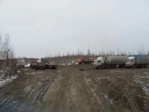 Я уже писала, что на пикетах редко спим. Но однажды очень устали, да и площадка перед столовой почти пуста. Ветер. Чтоб в кабину не попадали выхлопные газы, развернулись в противоположную сторону. Часов в шесть утра проснулись. Смотрю в окно, ничего не понимаю, где я, что здесь делаю? Смешно, но, наверно, в таких же ситуациях водители уходили в обратных направлениях. Устают, физическое и нервное напряжение огромное. И заблудиться очень просто, дорог понаделали множество, то на буровые, то еще куда-то. Если в начале нашего путешествия, когда и заблудиться-то практически было негде, умудрялись, то о чем можно говорить сейчас.