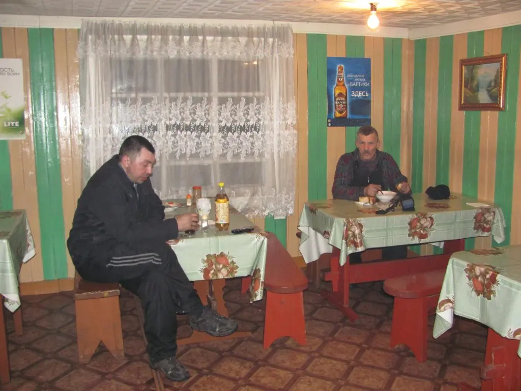 Вообще, пикеты — это отдельная тема. На зимнике их несколько штук. Стены в столовых обклеены денежными купюрами с приветами с разных уголков страны. Фотографиями со всевозможными ДТП. Здесь водители не только могут покушать, сходить в баню. В первую очередь, пикеты — это свет в окошке. Многодневные рейсы, некоторые водители на зимнике из других регионов. Они живут в машинах до весны. Машины не глушатся. Люди устают, изматываются, поломки, ДТП. А на пикетах встречи, разговоры, «расслабуха», и снова дорога. «Расслабляются» порой часто, пользуясь тем, что бяки-буки ГАИ появляются на зимнике от случая к случаю, при серьезных ДТП.