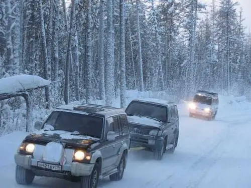 На подъеме с Нижней Тунгуски. Скользко. Прошло почти три месяца после окончания навигационного периода на Лене. Только с открытием зимника начинает поступать груз на Якутский Север: в города Удачный, Айхал, Мирный и Ленск и др. Первым рейсом в Якутию идут машины 24-го региона. Их почему-то называют «соколовцами». Все машины оснащены рациями, предупреждают, где и какое препятствие. Еще с другого берега узнали, что почти весь подъем забит. Дабы не попасть «под раздачу», если идущую впереди машину потащит назад, стоим. Каждый взявший подъем, предупреждает следующего «…я поднялся…».