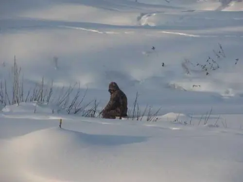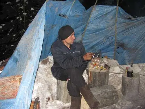 Спасло его, что он все же передохнул, набрел на брошенную буровую. Но там не было продуктов, только немного гороха. Даже зайца, которого поймал в петлю, отпустил, потому что тот кричал, как ребенок. И снова пошел, набрел на заброшенное зимовье. Постелил у печи доски, лег на них и стал ждать смерти. Идти уже не мог. И как в пелене увидел, что в зимовье заходят люди. Но самое интересное, что в заброшенное зимовье уже давно никто не наведывался и пришли они из разных охотничьих участков. Их просто туда потянуло. Мой новый знакомый не охотник, он творческая личность, путешествует, пишет, рисует. Давно на пенсии. Живет в гармонии с природой. В меру выпивает.