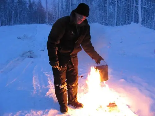 Вода с наледи для чая (оказалась почему-то очень горькой, может, потому что в нескольких км стоит буровая)