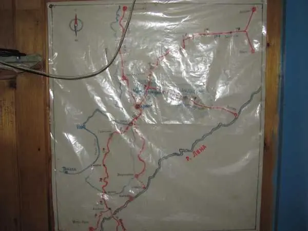 Пикет «Чона». Карта зимника Иркутской области и Якутии. Нам нравится останавливаться на этом пикете. Гостеприимный хозяин, доброжелательный персонал. Баня. Помогут, поговорят с тобой. Расскажут что-нибудь интересное, ведь на пикетах всегда новости узнают первыми.