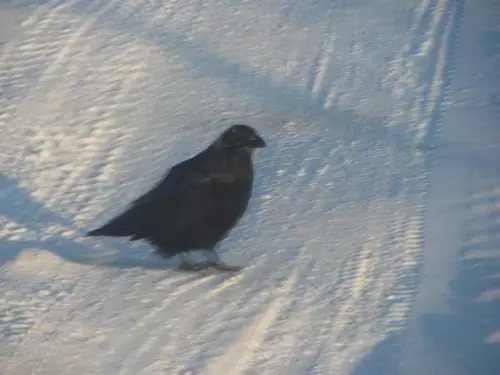 Пик 4 - За этими умными птицами интересно наблюдать. Видели, как ворона играла с щенком. В клюве кость, отлетит метров пять, бросит, ждет. Щенок с лаем бежит до кости. Ворона из-под носа выхватывает приманку, снова отлетает, бросает. И так почти час. Эта ворона удивила. Стоим на пикете. Машин много, ворона явно уже сыта. Бросила ей кусок хлеба, схватила, улетела и тут же возвращается. Голова по плечи в снегу. Стало интересно, дала еще кусок. Подхватила, полетела к обочине дороги, с кусочком хлеба погрузила голову в снег. Вытащила голову, клювом замаскировала клад, прилетела, ждет. Снег с головы немного осыпался. Фотографировала через двойное лобовое стекло, немного мутно.
