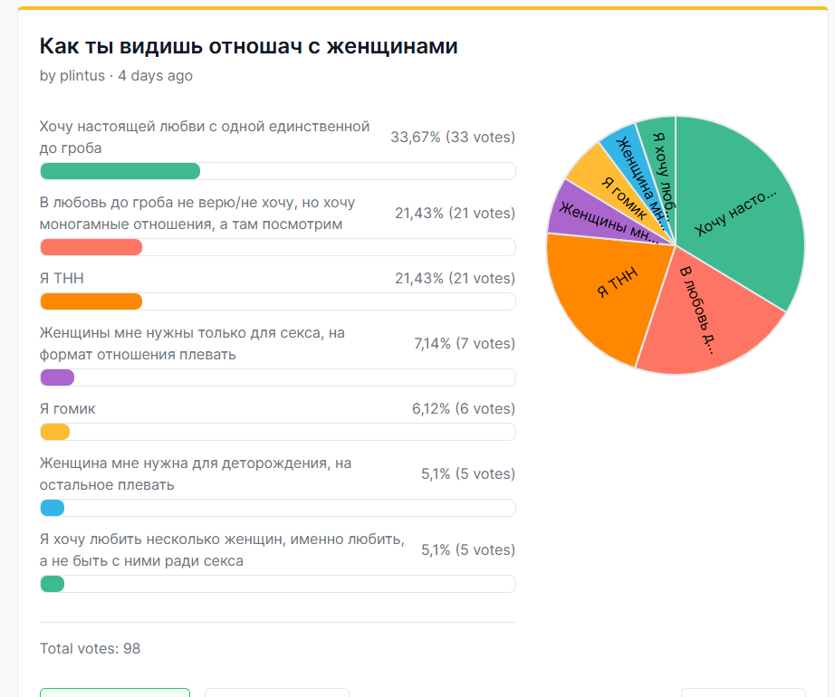 Я живу на северном Кавказе, поэтому здесь все женщины мечтают либо о недрах, либо о кавказцах, либо о турках и арабах, а я являюсь белым, не совсем белым евреем, но тем не менее. И могу сказать, что чтобы мне тут не рассказывали, а этническая расовая принадлежность играет в самую первичную роль, какая только есть. Вся эта инцелошиза про рост челюсть, длину члена и все такое десятистепенно. Важна этническая принадлежность. Если ты негр, араб или Кавказец, то в тебя влюбляются буквально все женщины, сразу же готовы ради тебя на все что угодно, а если нет, то ты в хуй никому не нужен даже с деньгами и хорошей внешностью.