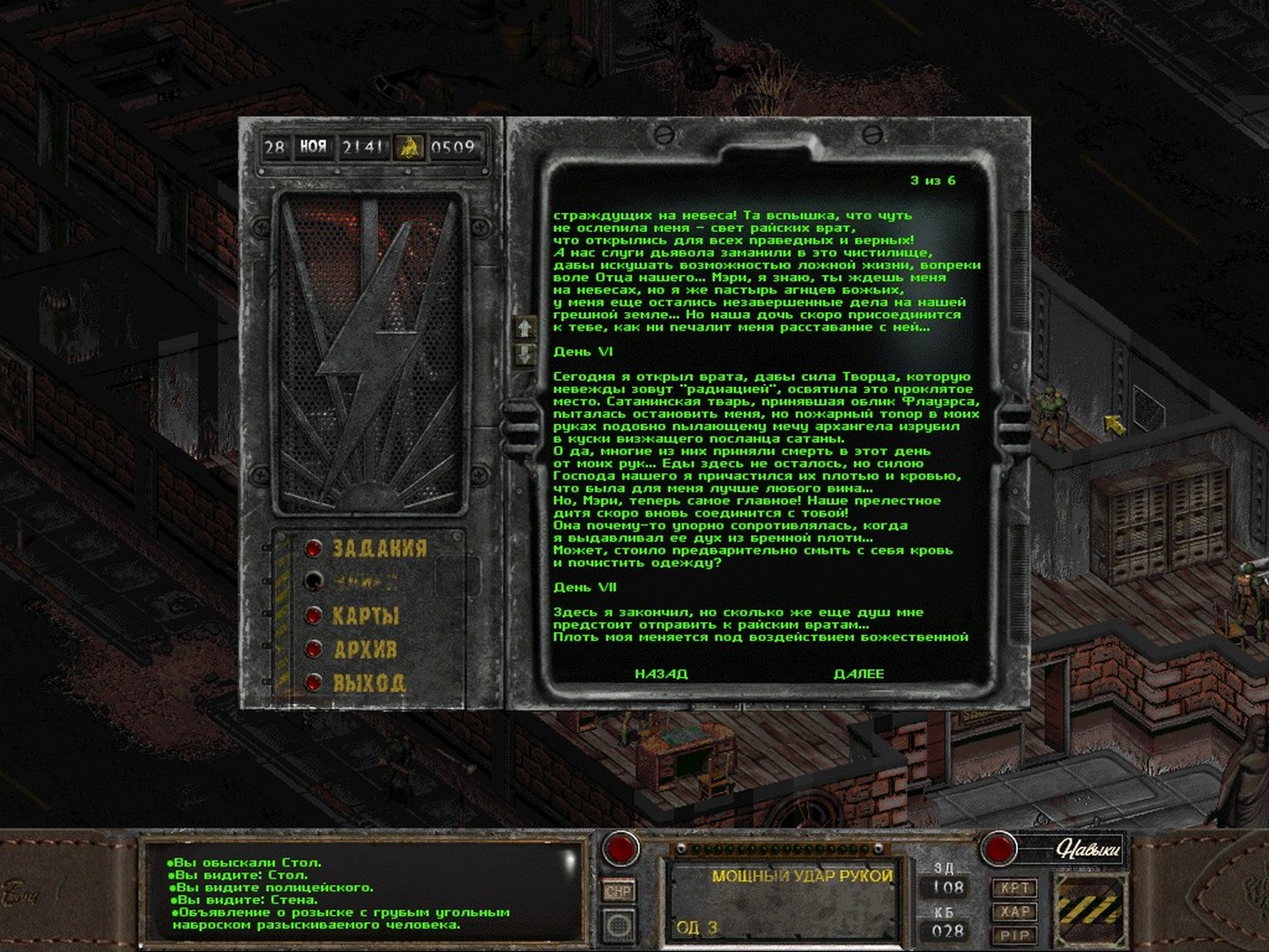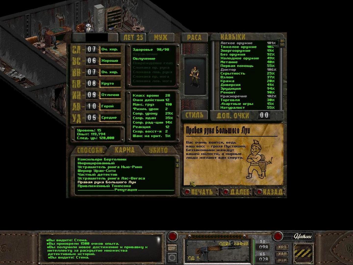 >>327378058 Собираюсь весь день в Неваду играть, затянула. Несмотря на уёбский интерфейс, доставшийся от прародителя, истории тут не хуже второго фолыча. Решил в кои-то веки не снайпером а пиздоболом-задушевником поиграть, но выяснилось, что такие тут долго не живут, в незнакомой-то игре. Пришлось становиться универсалом, иначе заебёшься сейвскамить. С выводком когтей смерти хуй договоришься. Да и вообще она хардкорнее оригинала. Чувствуется атмосфера ранних послевоенных лет, это хронологически предшественник 1-2 частей.