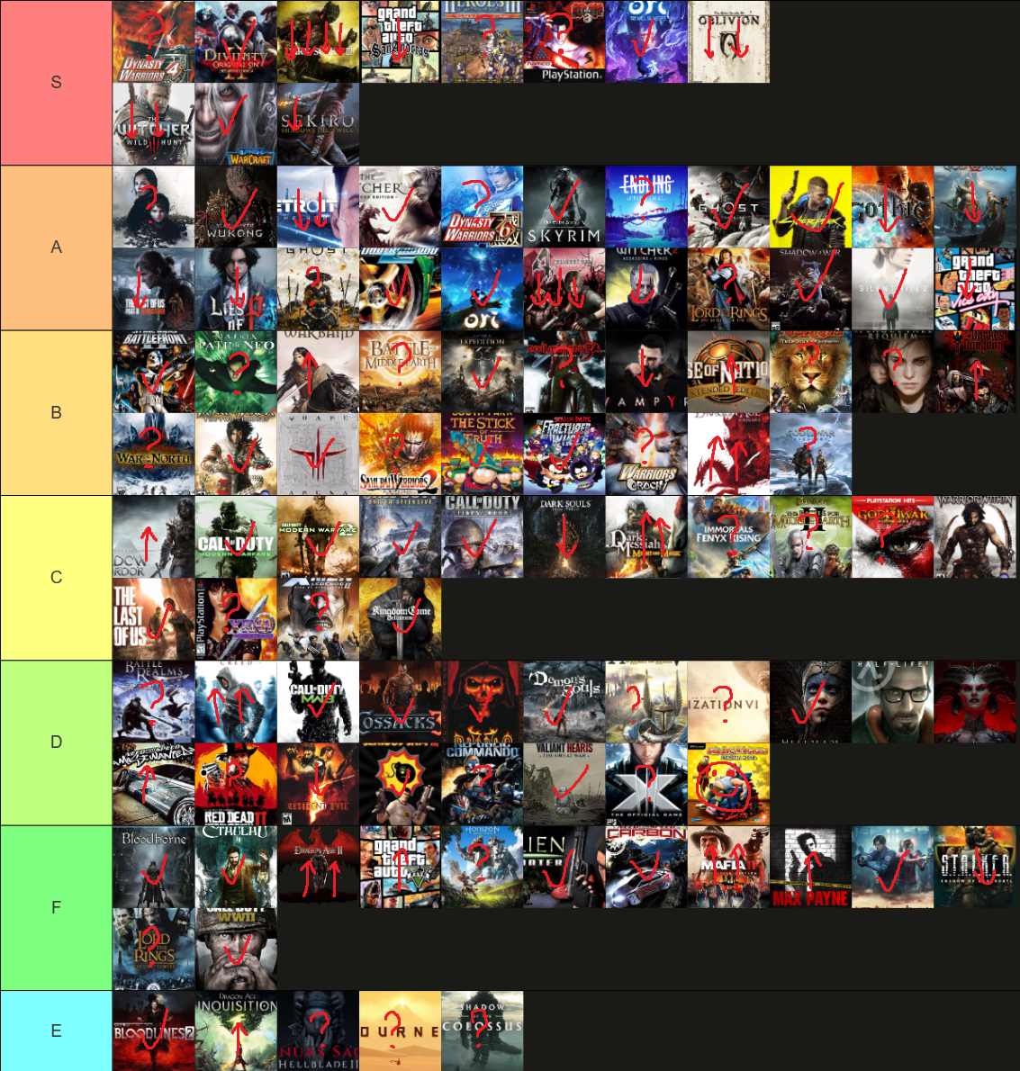 >>327558563 ? - либо не играл и не имею мнения, либо сомневаюсь v - согласие Стрелочки - по количеству стрелочек на сколько бы тиров я переместил в ту или иную сторону, в зависимости от направления стрелочки