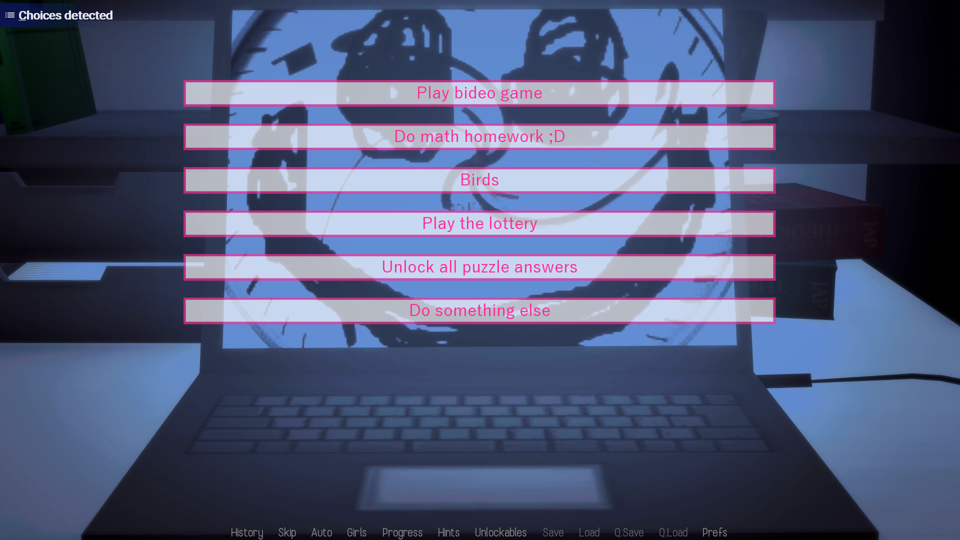 Удачи тебе к примеру пройти вот эту шизо-штуку, решения от которой разбросаны в виде рандомных диалогов по игре, или в виде слов в тексте песни на фоне, или в цифрах на одной из картинок, что ты видел 20 часов назад. А затем еще и понять, куда нахуй это все можно применить, потому что здесь более сотни кликабельных вариантов.
