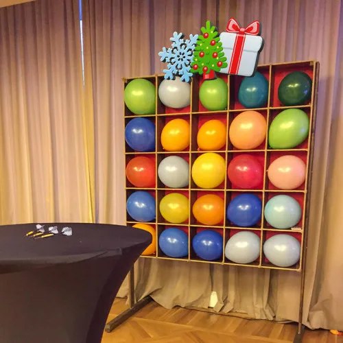 Рыжая бобриха Рыжелина (1) с улыбкой, но чуть напряжённой (зажимая губу резцами), в наклонной вперёд позе, отбивает словно битой хвостом рандомные предметы, лопая ими шарики, которые не видит из-за ракурса.