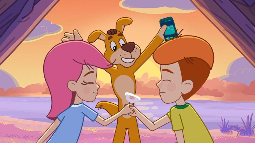 Корри Утконос (3), вдвое-втрое ниже Рыжелины, хвалит эту очаровательную бобришку за хорошую игру, азарт, движения. Но сам также глядит ей под хвост.