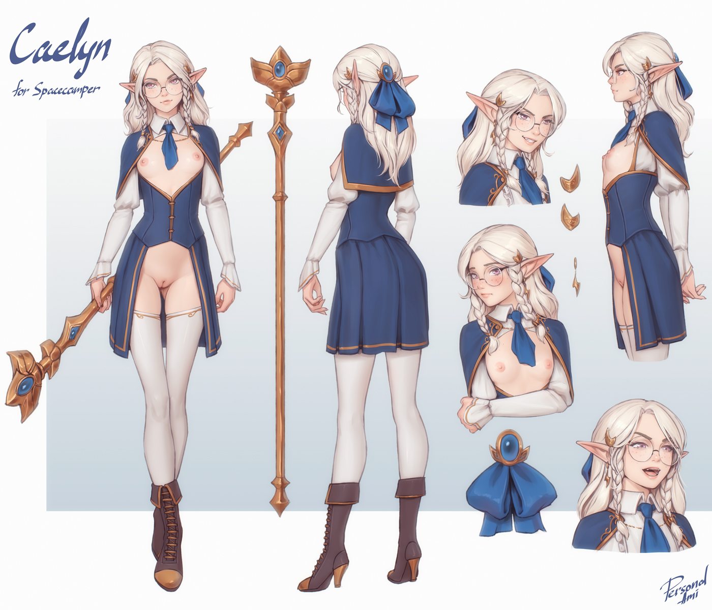 Опционально, на Рыжелине зимняя шапка и лёгкая расстёгнутая куртка, не скрывающая все соски.