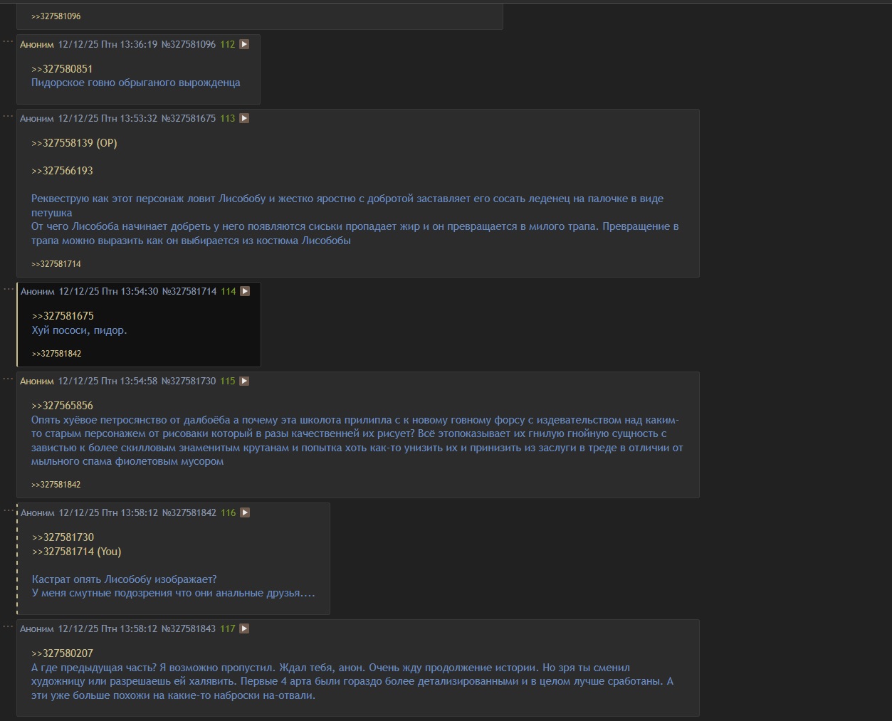 >>327581842 А в чём он не прав? Школьнику похер с кем воевать, он уже к хейту привык и к провокациям, чтобы внимание получать. Как с зайцем было, тот съебал, теперь новый враг. Съебёт или помрёт лисоёб, то ничего не изменится, найдёт новую цель, чтобы юшки фармить. Добрее надо быть.
