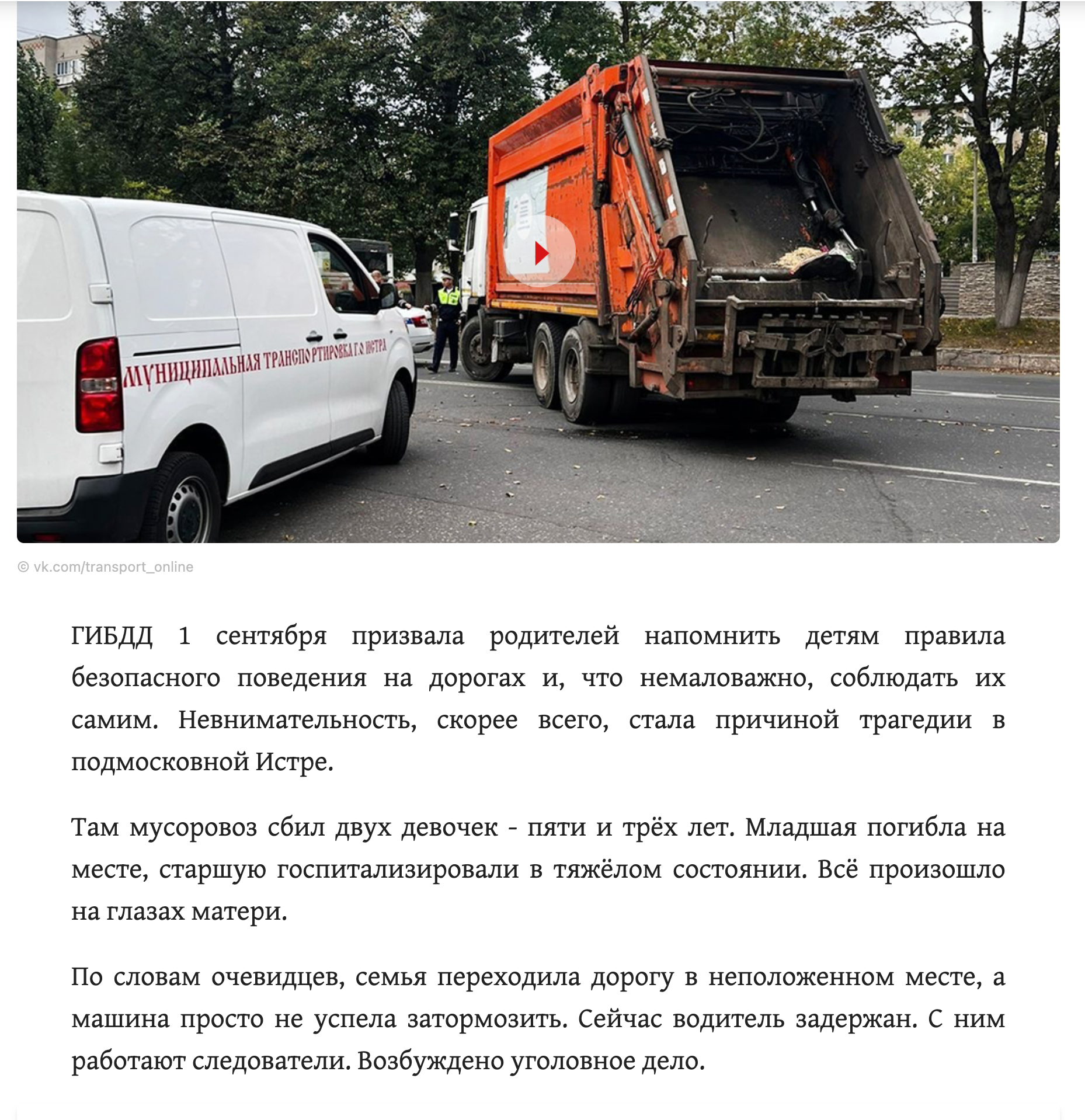 >>327742517 >на глазах матери Виноват водитель мусоровоза конечно же за то, что не смог за долисекунду затормозить, а не пизда, переводившая детей в неположенном месте.