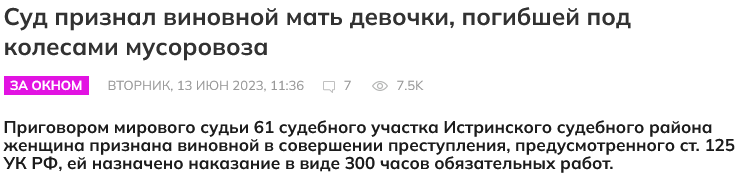 >>327743493 Охуеть, убившей своих детей дуре 300 часов, водиле, от которого нихуя не зависело - год колонии + 3 года безработным сидеть. Фемкосудие как обычно.