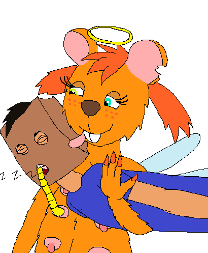 Рыжая бобриха Рыжелина (1) с милым взглядом выгрызает резцами из деревянной пластины символ сердечка, пока её искренний любитель (в два-три раза меньше Рыжелины) Корри-Утконос (2) с возбуждением (заметьте, там есть реф его пинуса) иль просто любовью одевает её в лёгкий зимний прикид с шапкой, шарфом, чулками, может расстёгнутой курточкой, но с сосками бобрихи напоказ.