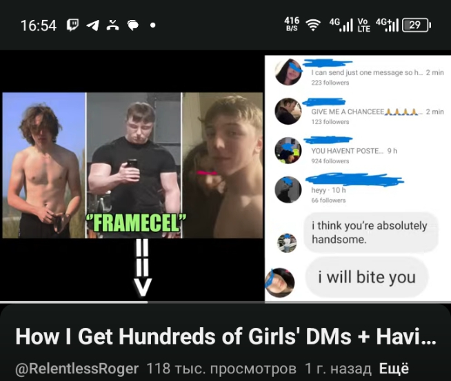 >>327812147 Тебе чел в треде правильно сказал, что ты стал вести просто нормальный образ жизни, а быть просто нормальным уже недостаточно, чтоб легко получать телок, тебе все равно пришлось бы быть клоуном, проявлять инициативу, брутфорсить сз ради 2-3мэтчей. Луксмаксинг именно про "максинг", брекеты, мьюингы, качалки и пр. Чел в видосе не обладает каким-то красивым ебалом, но сделал из себя реального огра, все эти упражнения на руки, запястья, набор массы, это тебе не просто гантельки потягать, была проделана огромная работа