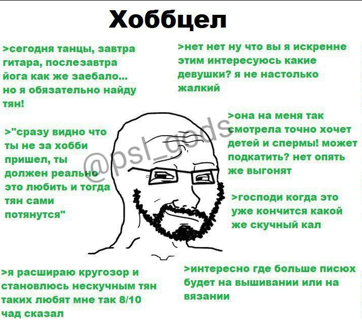 >>327815688 >В общем, они не чеды Он не про это. Он про то, что эти условные 200 лайков на деле лайка 3-4, все остальное просто либо совсем уж дно, какие-то таджики без знания русского, какие-то извраты жуткие. Ты же видел на дваче кучу тредов, где переписка с сз у битарда за 3-4 сообщения уходит в тему "Я тебя порежу и твоего парня тоже порежу". Ты думаешь это троллинг, а на деле полно и таких. Я не защищаю тянок, тянки сейчас тоже 95% неадекватные, но и парни такие же. Ты не пытайся вписаться в какое-то большинство "не-чедов" и защищать его, там нехуй защищать. Ты реально не хочешь быть в одной когорте с этими 200, ты бы даже не согласился с ними просто в бар сходить, даже если они бы тебя угостили, а мы тут про отношения, где тян рискует в целом больше чем ты при походе в бар с бешеным битардом.