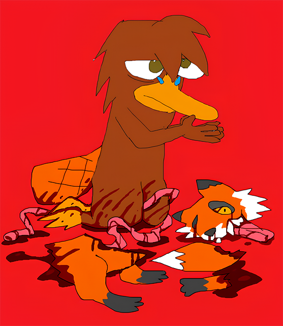Опционально, Корри возбуждён (самый левый реф с ним) и/или рядом с утконосом новогодняя ель.