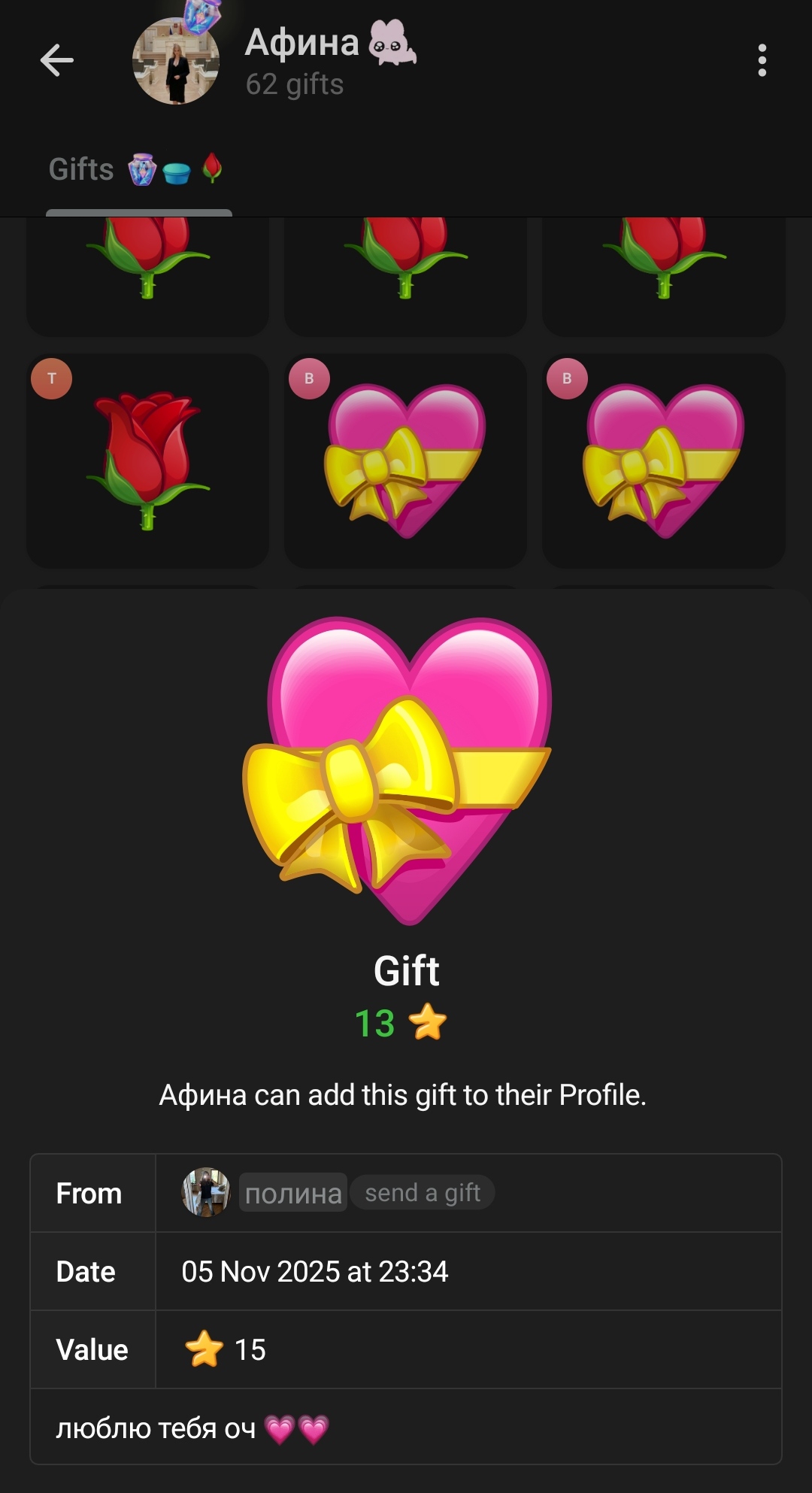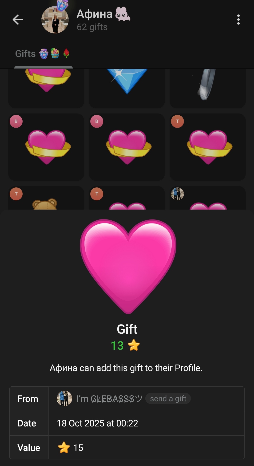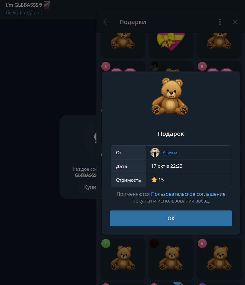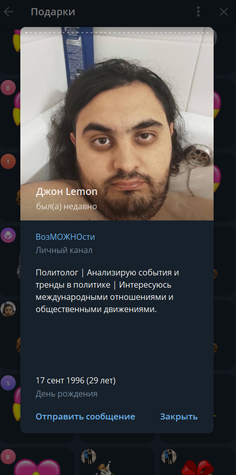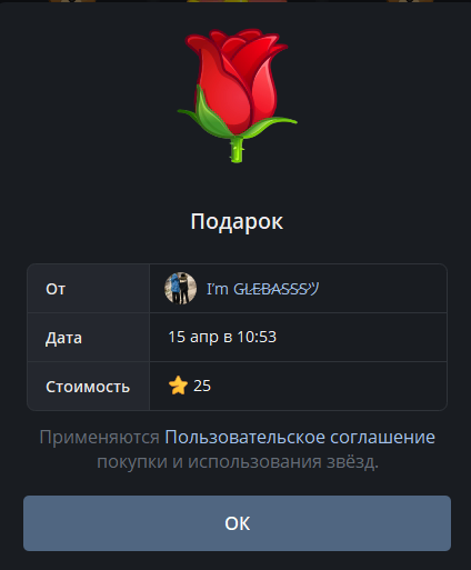 Да вот в том то и дело, что он ей ровно 15 апреля подарочек шлёт, а 21 апреля "пжпжпжпж" просит о чём то, скорее всего о том чтобы не отменяла занятия...