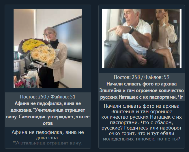 Начали сливать фото из архива Эпштейна и там огромное количество русских Наташек с их паспортами. Что с ебалом, русские? Гордитесь или наоборот очко горит, что и тут ебали молоденьких тяночек, но не ты?