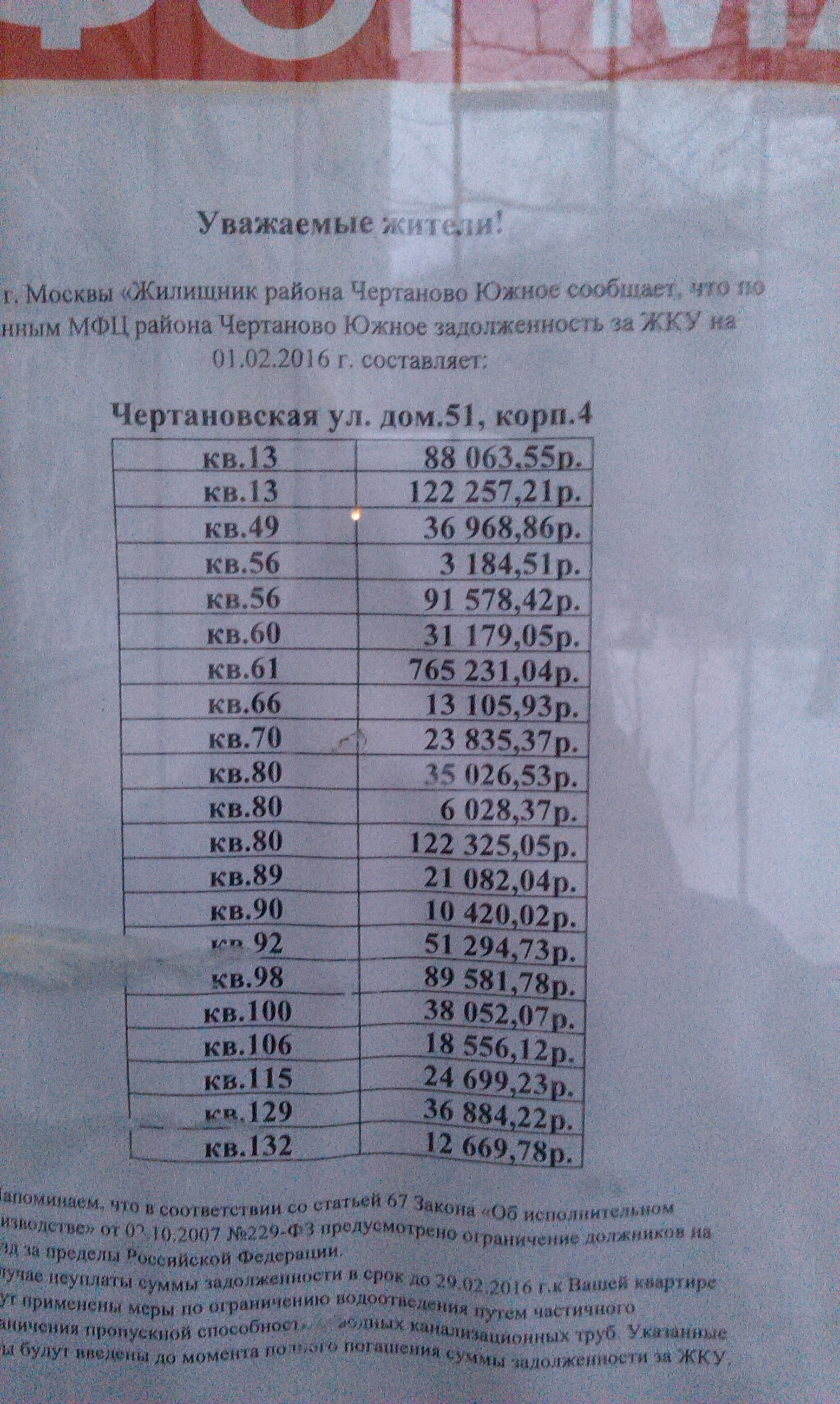 >>327826945 (OP) Тоже накопил задолженность в 45к. Охуевшие вывешивали сначала списки на входе в подъезд, потом вообще приклеили круглую наклейку на мой почтовый ящик "должник". Я сорвал все, но признаю, это вынудило меня частично оплатить задолженность (потратил кредитку сука)