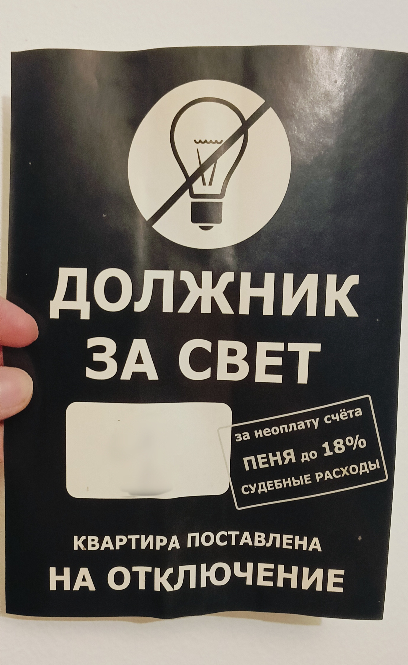 >>327826945 (OP) А мне в прикол. Мне повесили на дверь картинку с лампочкой и надписью "должник за электричество" или че то такое, я её в рамочку повешу.