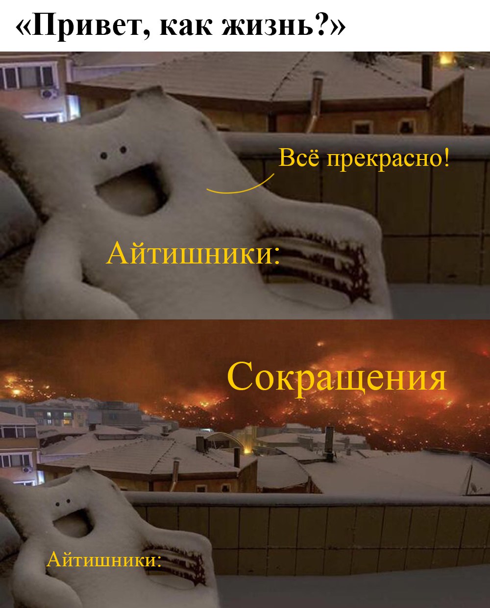 ведь заводская манька уже готова радоваться фантазиям о том, как более успешного человека кидают на мороз, а он сидит в тепле в заводскай столовке и умиляется. Но нет, копроскот, это ПЕРЕСТРОЙКА ранка ай-ти (грубо, разрабы уйдут в архитектуру и аналитику), а не его конец.