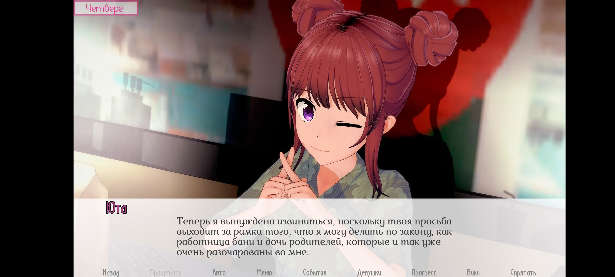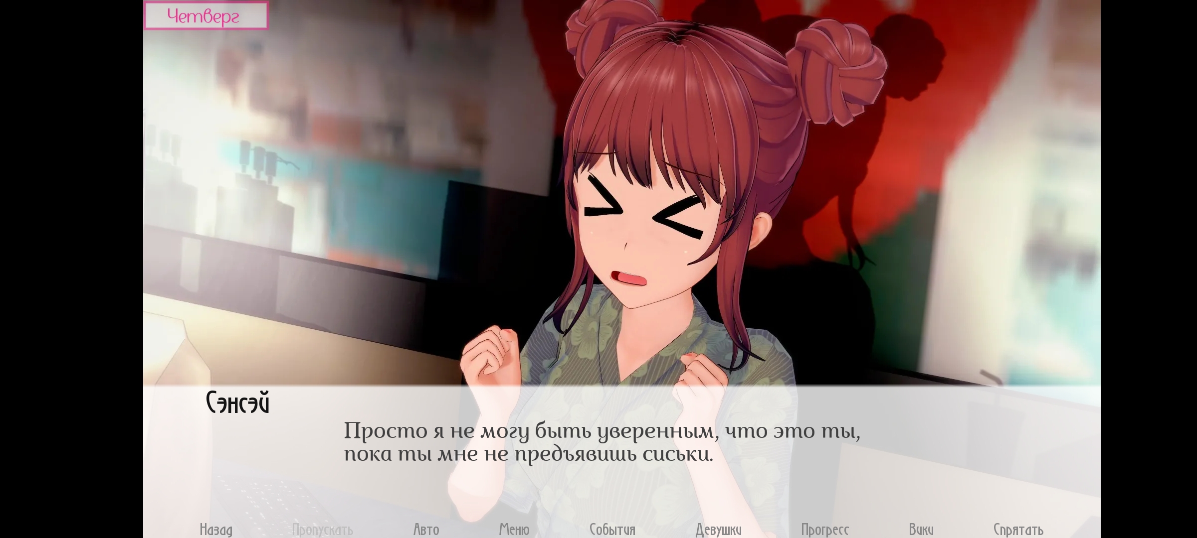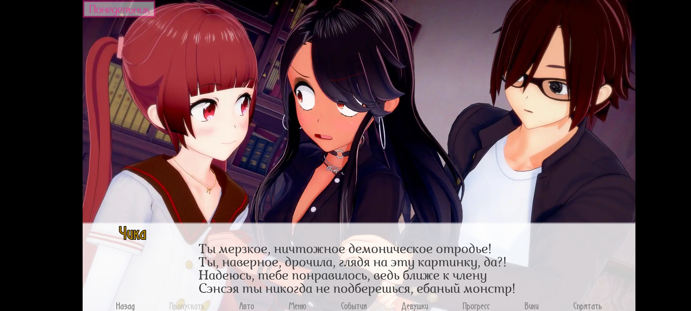 А вообще я бы, так сказать, потусил с Чикой и Чинами, если представится возможность. Надеюсь разработчик учел такое развитие событий, в чём я конечно сомневаюсь, но не спойлери мне — такая неожиданная радость будет приятна. Ещё жду продвижения с Кирин, пока игра не даёт.