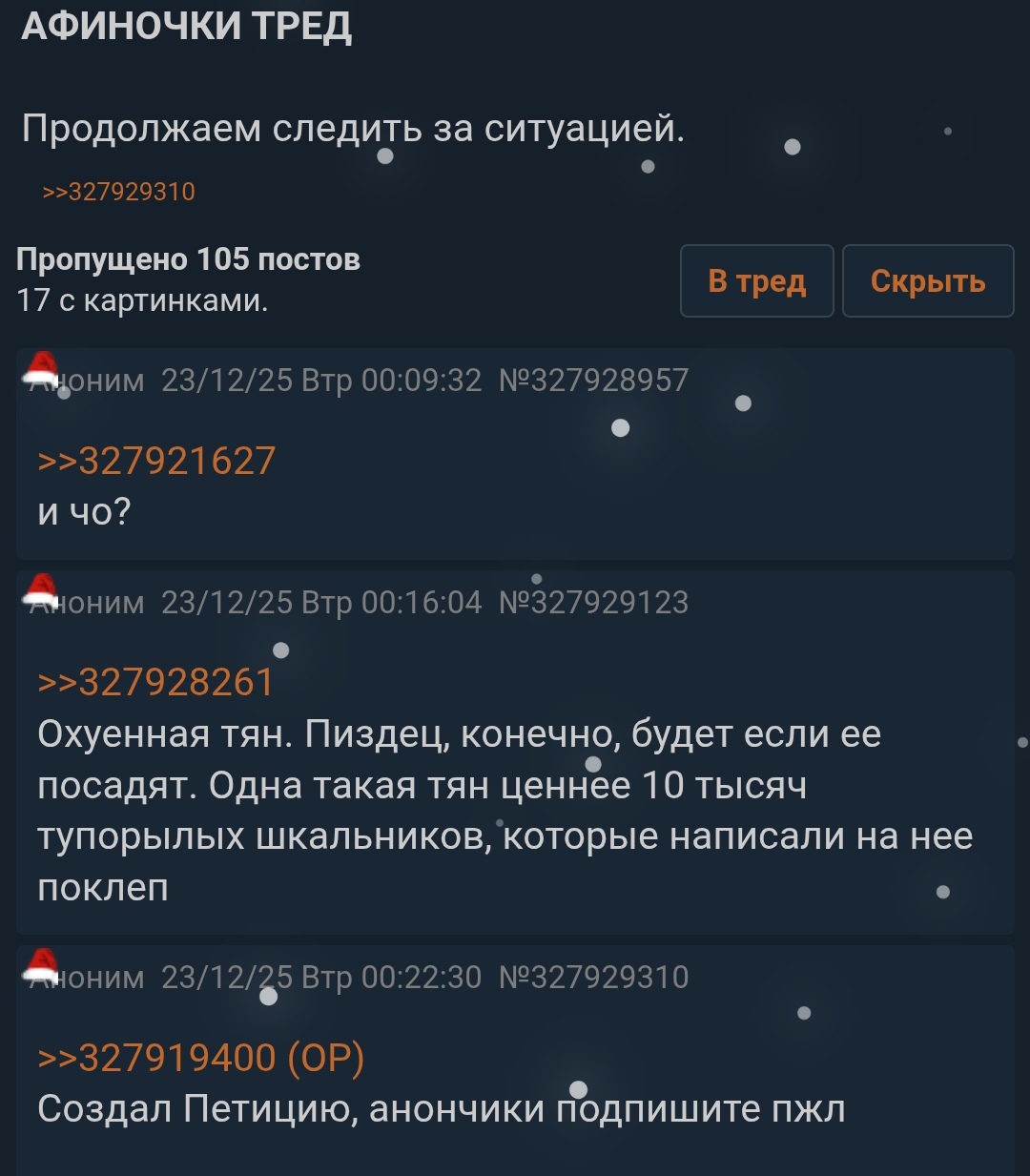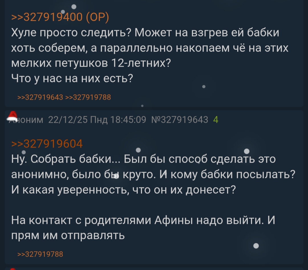 Ты что-то там писал про то, что инфа уже у нужных людей, я хз не знаю как видеть сообщения на этом вашем дваче, суть в том, что он же доп расследование какое-то назначил И причем тут идиот, он же не сказал что афиночку оболгали и ее нужно освободить Короче все Не злись:::*
