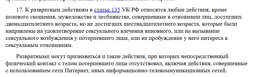 >>327960232 >>327959568 (OP) >на тот момент 11-летнего ученика Так 14–15 лет и 12–13 это разные части статьи о совращении. С разной суровостью. Там даже всякие архаичные штуки есть, что при 14–15 даже отделаться совсем от наказания можно, если берешь тянку замуж и тип примерение сторон. А, если я правильно помню, до 12 это в любом случае износ, даже если добровольно было. Так что тнусу пиздец и даже Бастрыкин не поможет. Ну, то есть совсем-совсем пиздец. /тред