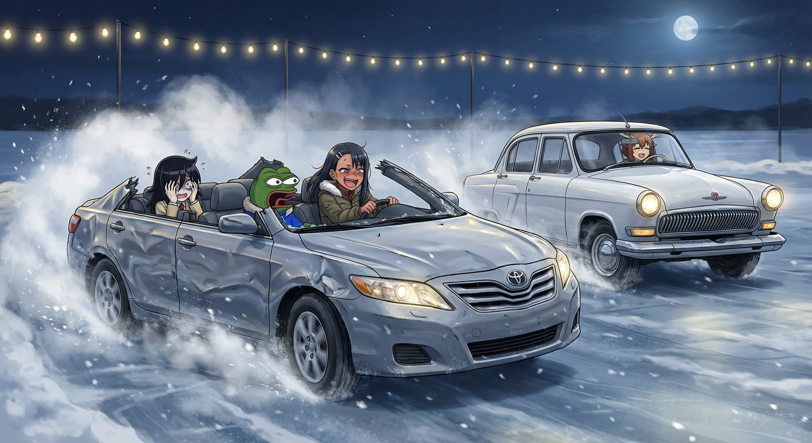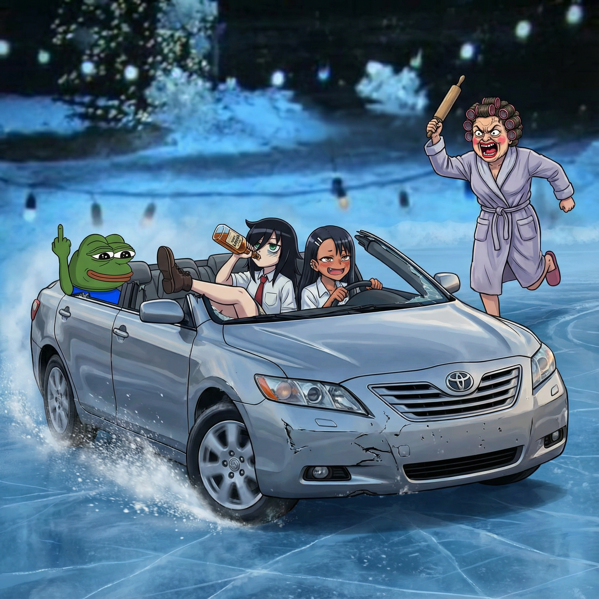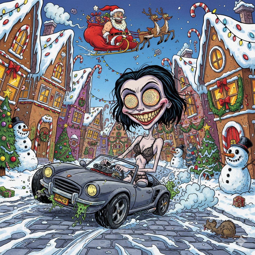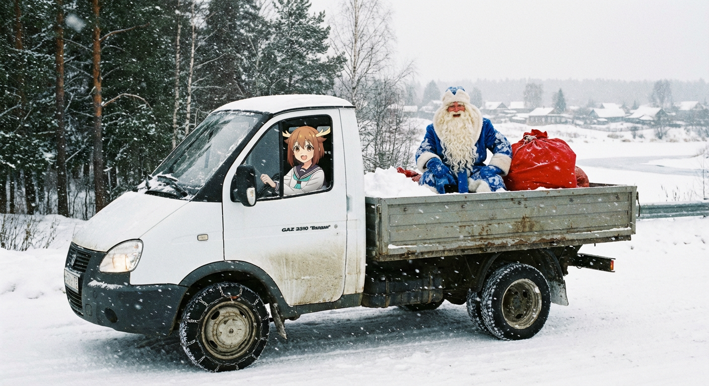🦌🚛❄️ Шиконоко и Дед Мороз Шиконоко крепко сжимала руль «Газели», вглядываясь в заснеженную дорогу. Дворники едва справлялись с летящими хлопьями снега.