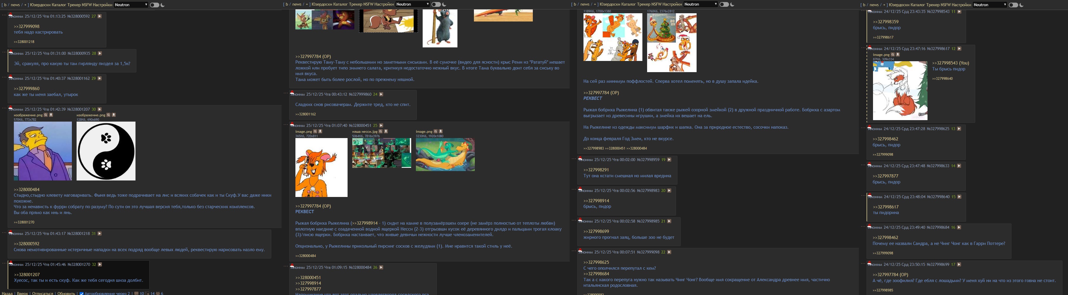 >>328000484 Стыдно,стыдно клевету наговаривать. Фыня ведь тоже подрачивает на лис и всяких собачек как и ты Скуф.У вас даже ники похожие. Что за ненависть к фурри собрату по разуму? По сути он это лучшая версия тебя,только без старческих комплексов. Вы оба прямо как инь и янь.