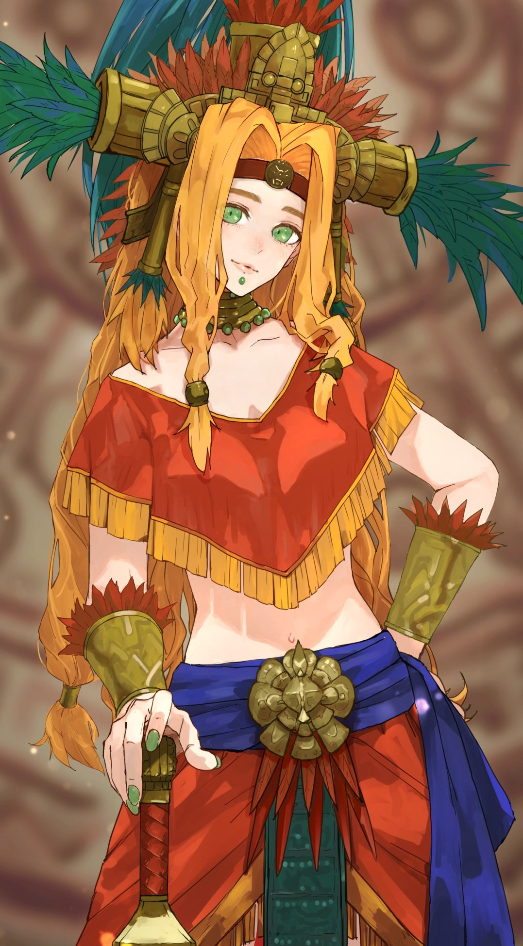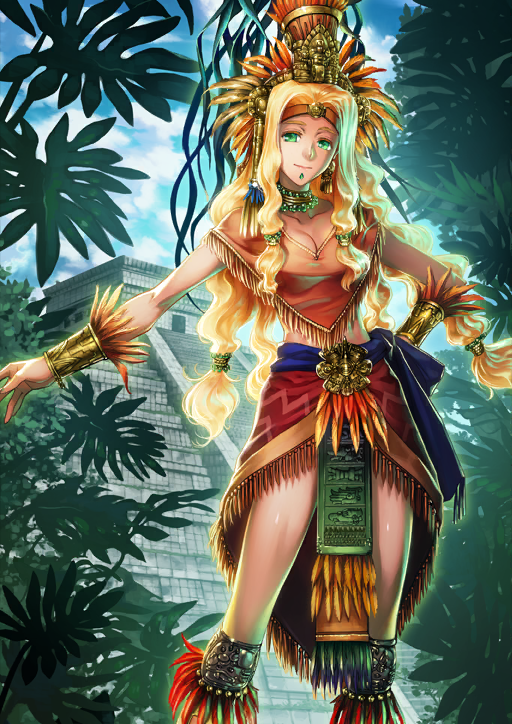 >>327997784 (OP) Реквестирую женское воплощение Кецалькоатля/Виракочи, сочетающие в себе как и мезоамериканские, так и андские черты (в виде кусков одежды, одолжённых из них обеих). С ацтецской предлагаю спиздить полутунику/набедренную повязку (пик 1-2), с андской же - шляпу и простые золотые браслеты (пик 3). Волосы светлые, глаза тоже (впадлу открывать "Следы Богов" - я не помню зелёные или голубые), лицо европеоидное. Как божества, ответственные в том числе за обучение, пускай учит на личном примере, как принимать ТРАХАТЬ в рот, позируя примерно как на пик 4.