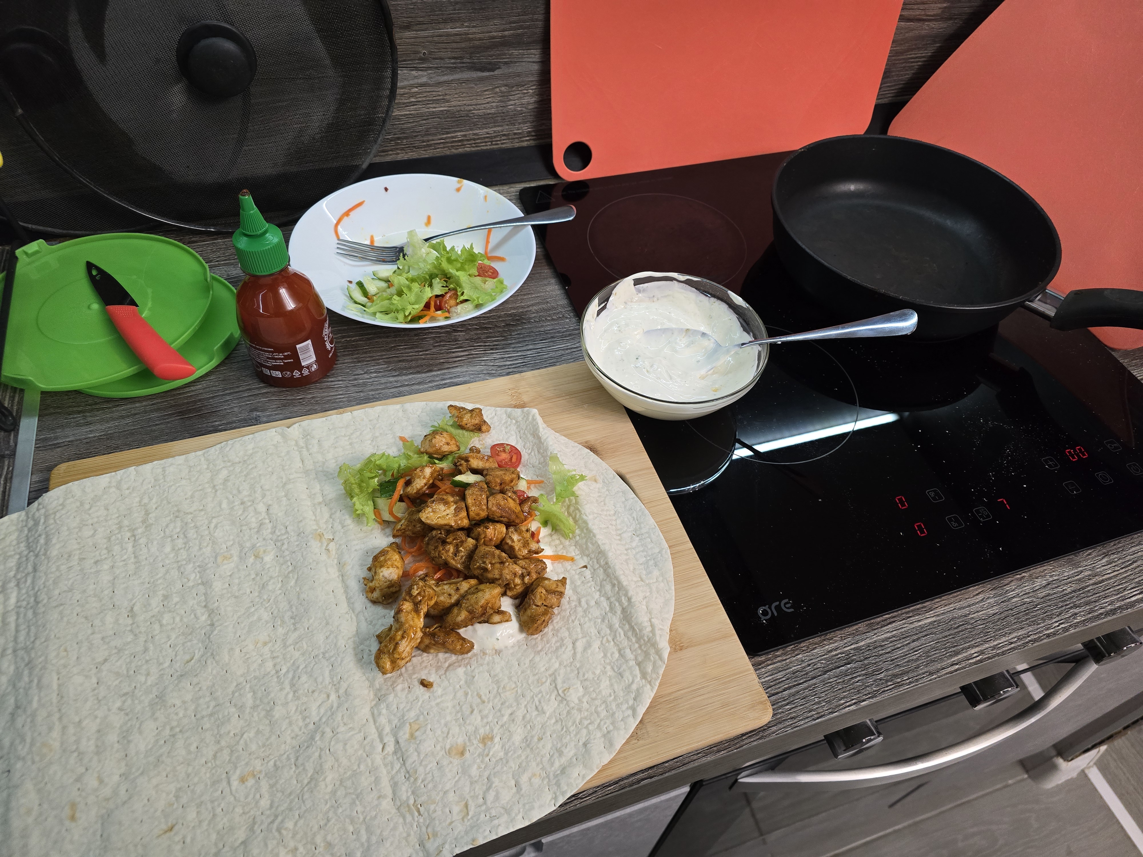 Куркума, перец красный, кокосовое молоко, курица резаная мелкими кусочками прямоугольными, кориандр, фенугрек, еще приправы - нахуй я все это покупал? Нахуй масло тратит хорошее на жарку? Сковороду помоил этим? Взял бы шавуху у хачей, результат тот же бы был, но гораздо быстрее и дешевле.