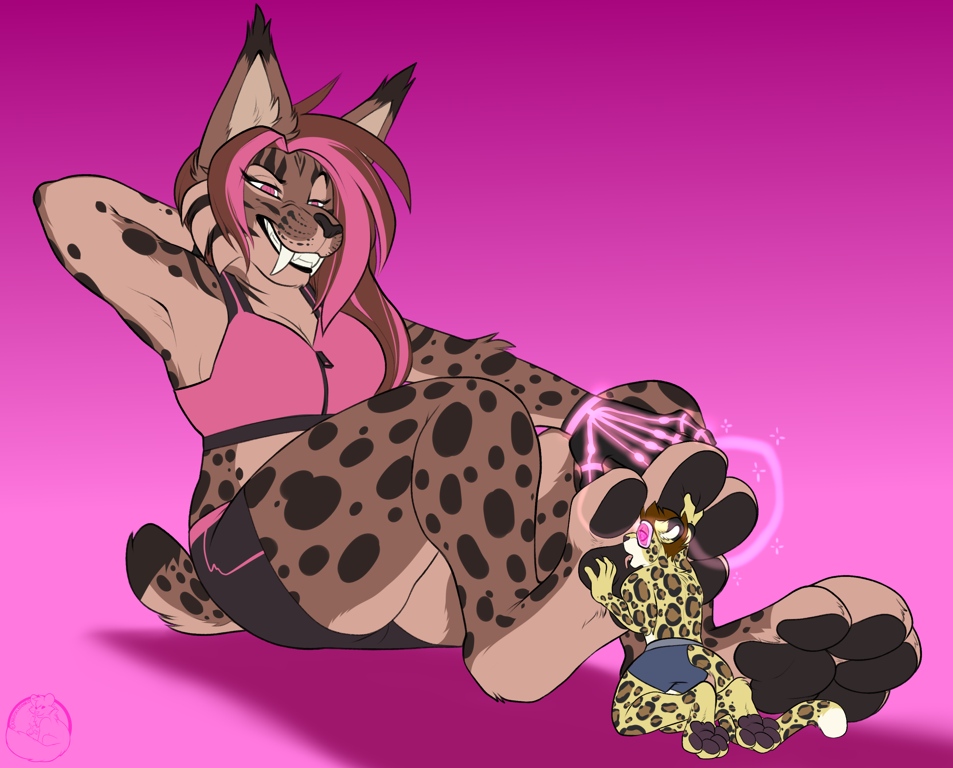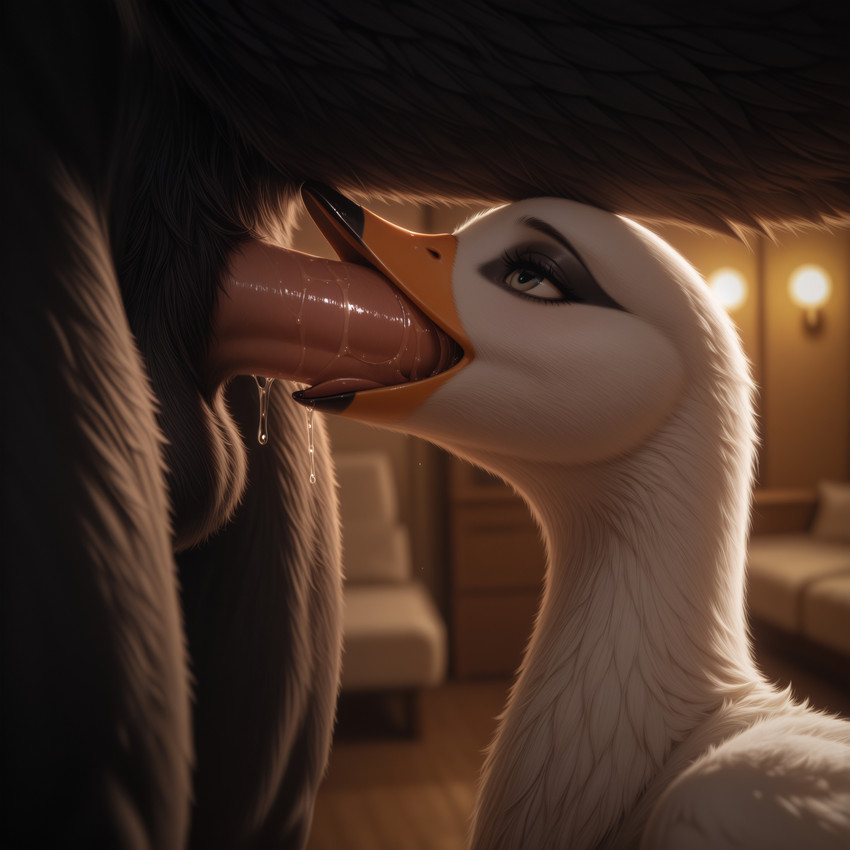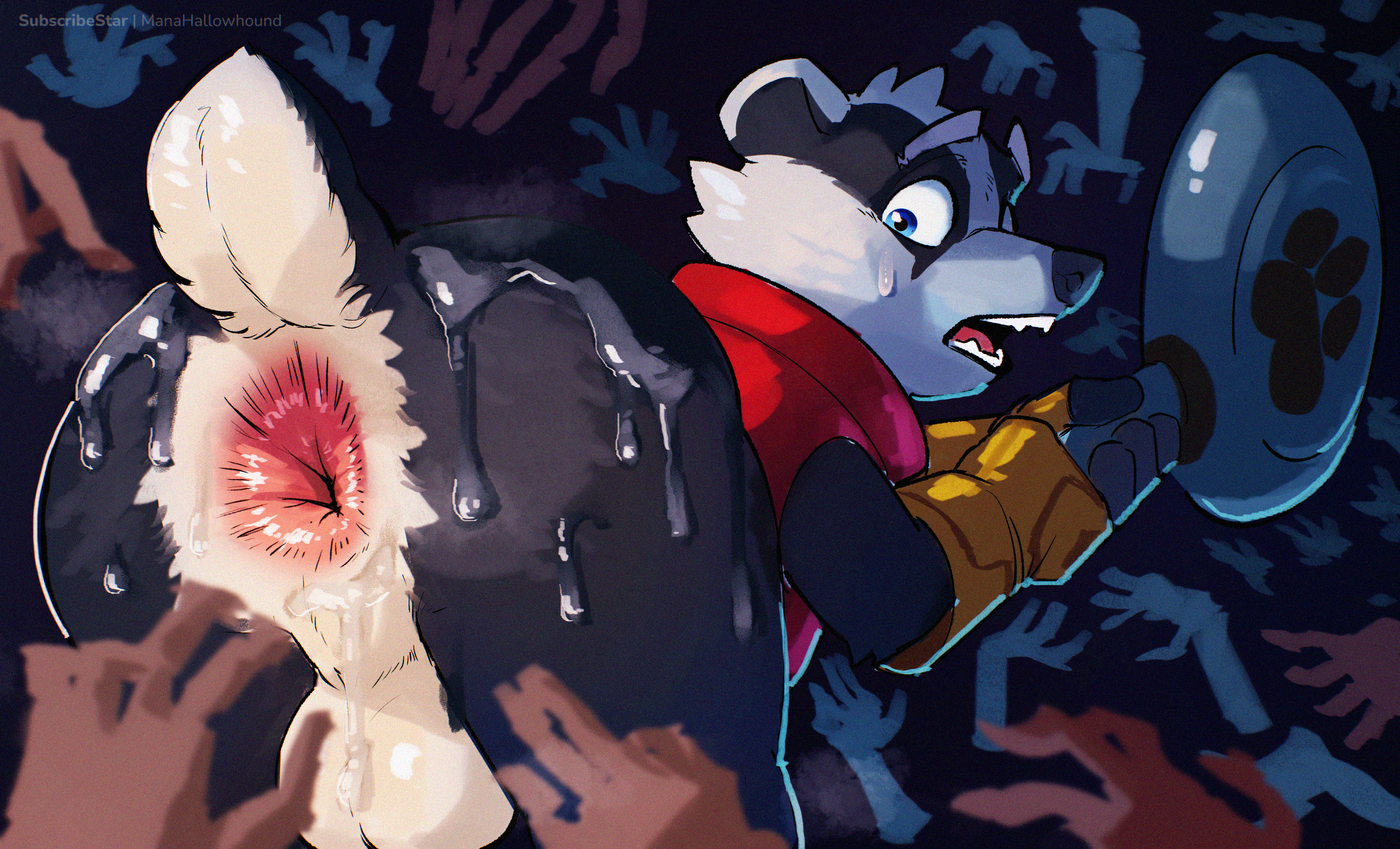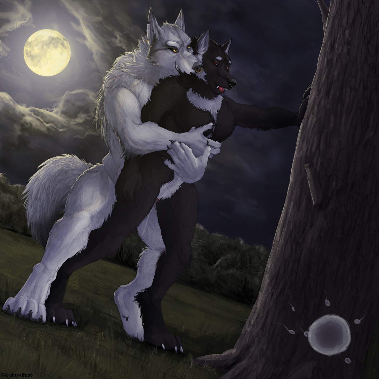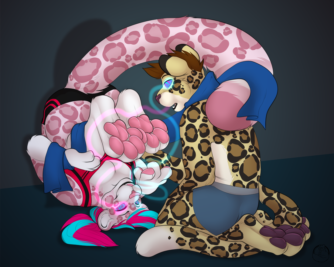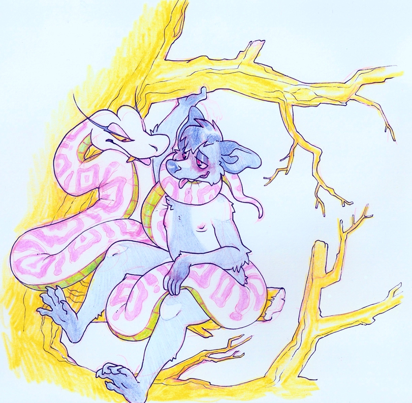 Олененок осторожно приоткрыл дверь: стоны, доносившиеся из соседней комнаты, подтвердили последний вариант. Он несколько раз глубоко вдохнул, распахнул дверь в коридор и быстрым шагом поспешил на кухню. Однако далеко уйти Мартину не удалось, в полумраке гостиной на разложенном диване одну из его соседок — невысокую белую тигрицу — яростно сношал — не жеребец, но какой-то здоровенный волк. Остановило его, однако, вовсе не это зрелище, к такому он давно привык, а вторая его соседка — крупная рыжая лисица. Жадно наблюдая за утехами развлекающейся парочки, она стояла у двери в гостиную, прислонившись к дверному косяку: трусики в бело-розовую полоску приспущены, правой рукой ласкает себя, а левую запустила под футболку и массирует грудь. Олешек мгновенно застыл на месте. Лисица не сразу, но все-таки обернулась на шум и Мартин на мгновение встретился с ней глазами. Соседка, судя по всему, была как обычно пьяна, однако, даже не смотря на, вроде бы, всякое отсутствие реакции с ее стороны, его укололо неприятное ощущение того, что лисица на долю секунды словно заглянула ему в душу. Олененок тут же опустил глаза, но его взгляд невольно упал на ее промежность.