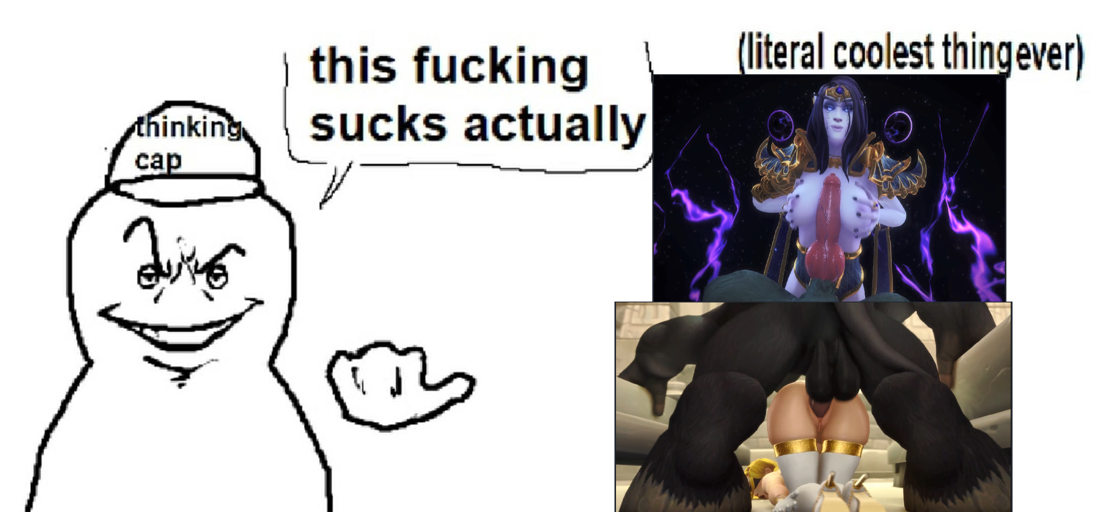 >>328575204 >Я вообще обратную мысль сказал: кто-то таки пытается, качает и делает. Но это, как всегда и везде (не только в б), очень малый процент людей. Ну это печально, да. Вот свою порнуху я стал пилить, ибо заманало от фурриёбов видеть кривой кал в SFM, а позже в Блендере. Поэтому пошёл делать свои работы с блекджеком и шлюхами, по малу развиваю навыки.