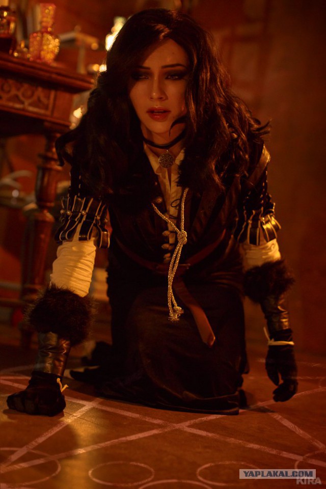 Затвор камеры щёлкает именно в тот момент, когда черноволосая чародейка оголила слишком много своего тела. Кружево лишь добавляет пикантности!