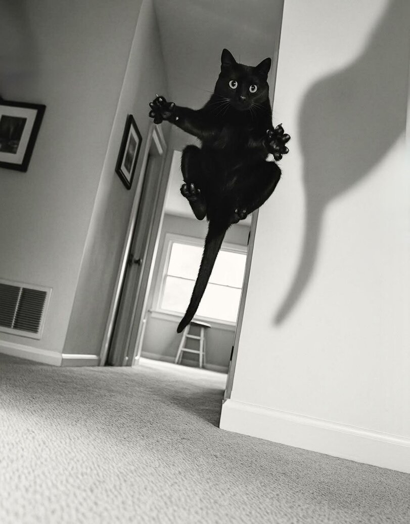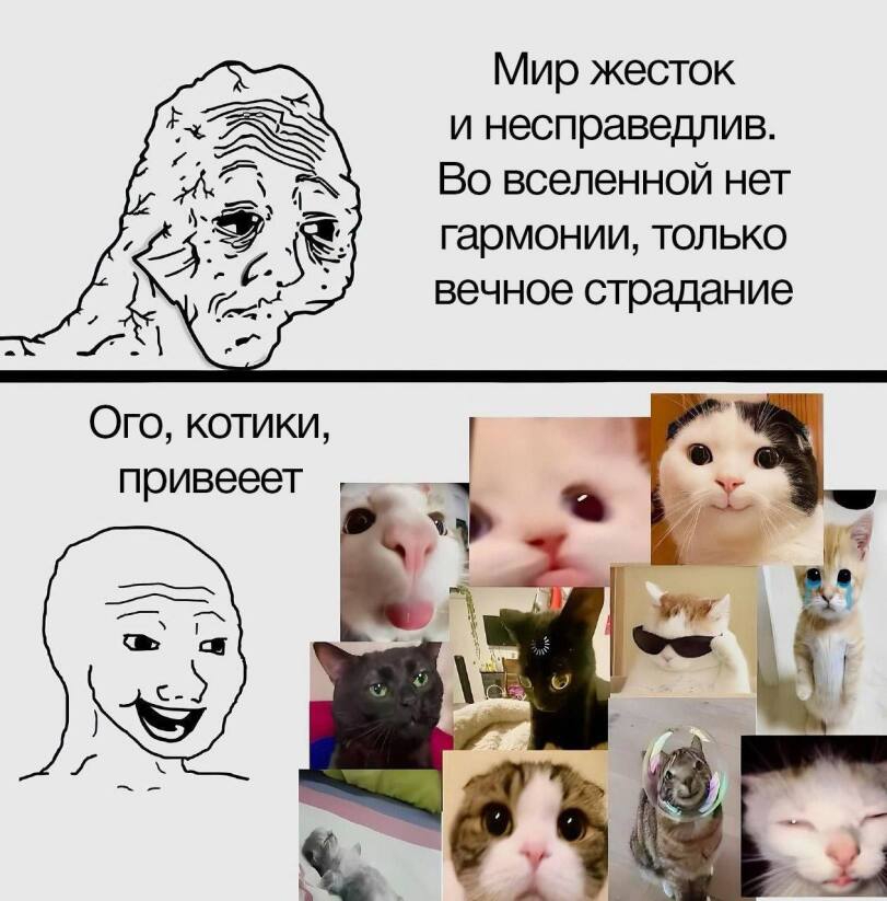 Достал из подвала коську Не перестаю удивляться. Эта кошка нихуя не боится. Например, заколачиваю в 30 см от нее детали - она в это время спит. Пылесосы, петарды - похуй. Беру подмышкой в пятерочку погулять, она там стены дерет и лезет в коробки с овощами. Потихоньку учится команде идти следом. Уже из соседнего двора до дома без эксцессов за мной доходит Сегодня в унитаз упала. Думал, улетит под потолок, разбрызгивая фекалии. Скорее вынул, вытер, и блять пошла невозмутимым шагом как ни в чем не бывало Из профитов сожрала всех тараканов. Думал, с возрастом перестанет, но ей 7 месяцев уже, а у нее осталась эта привычка, типа как у людей козявки колупать