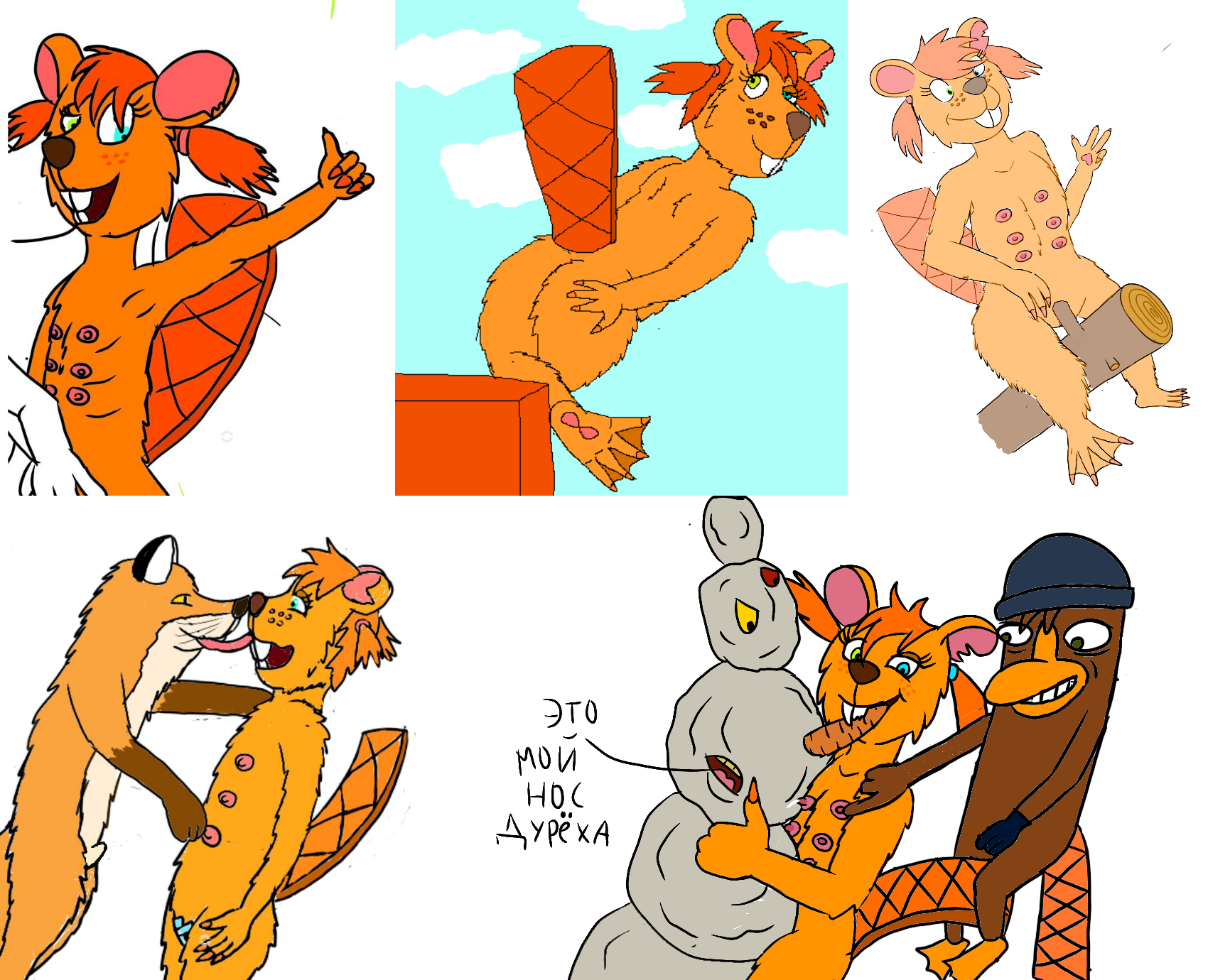 >>328646247 (OP) Реквестирую. Рыжая бобриха Рыжелина (1-2), потирая свои соски (привычка), демонстрирует своему партнёру, Корри Утконосу (на всех рисунках с бобришкой - 3) свои нагрызанные шедевры из дерева.