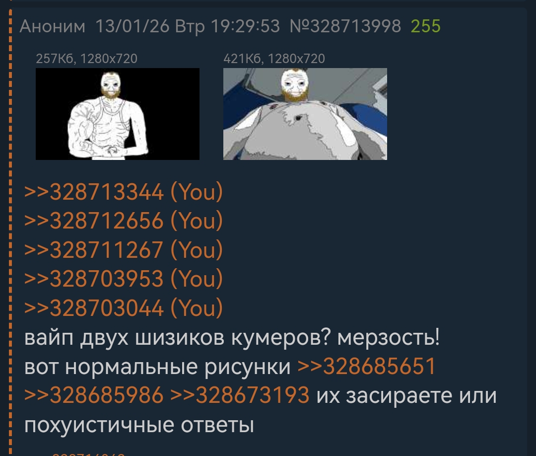 >>328672758 У всех бывают исключения. У члениса есть куры и милая волка. Хотя он сговнился как анон. Чмыло вообще не хочу обсуждать после гуро, это тяжкая статья. И если я хейчу рисоваку, это не значит что он полный ноль. К чмылу это не относится.