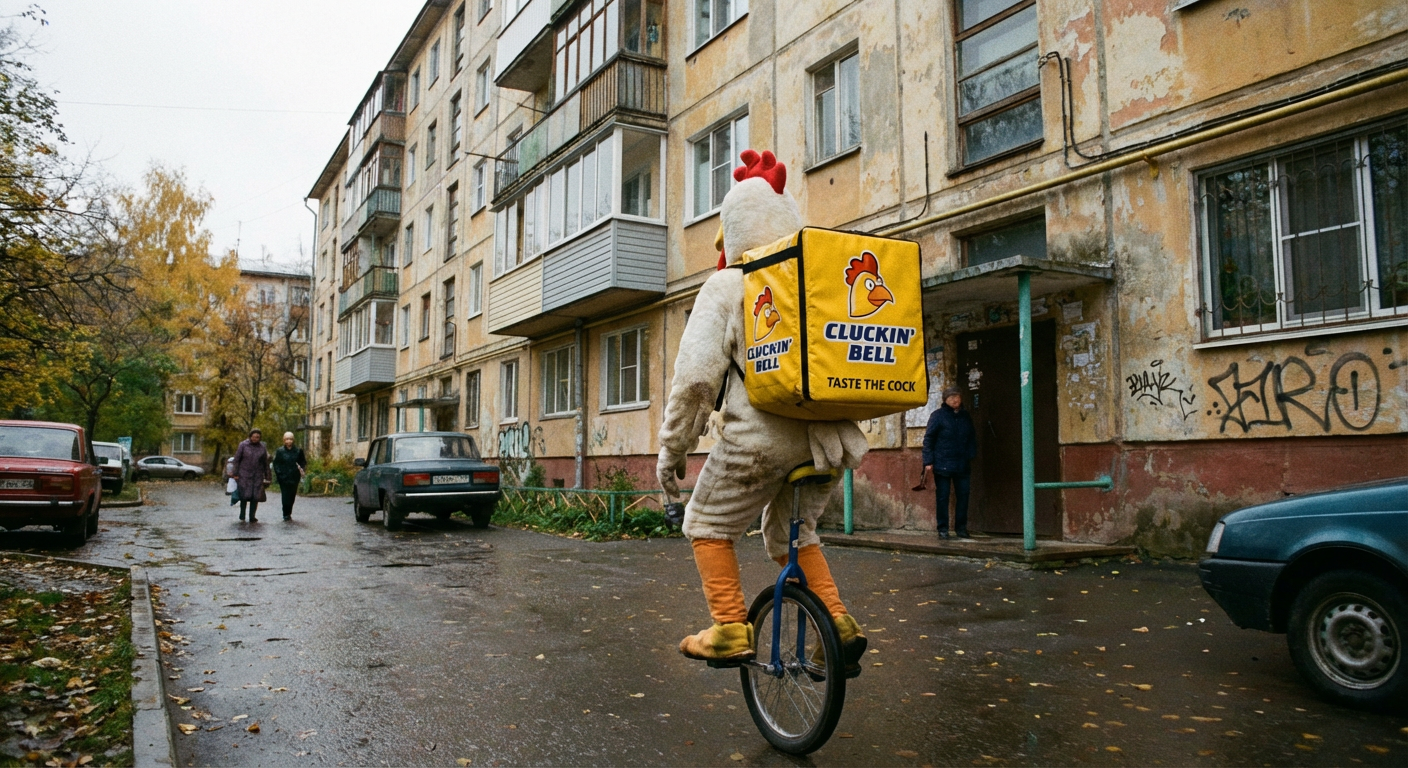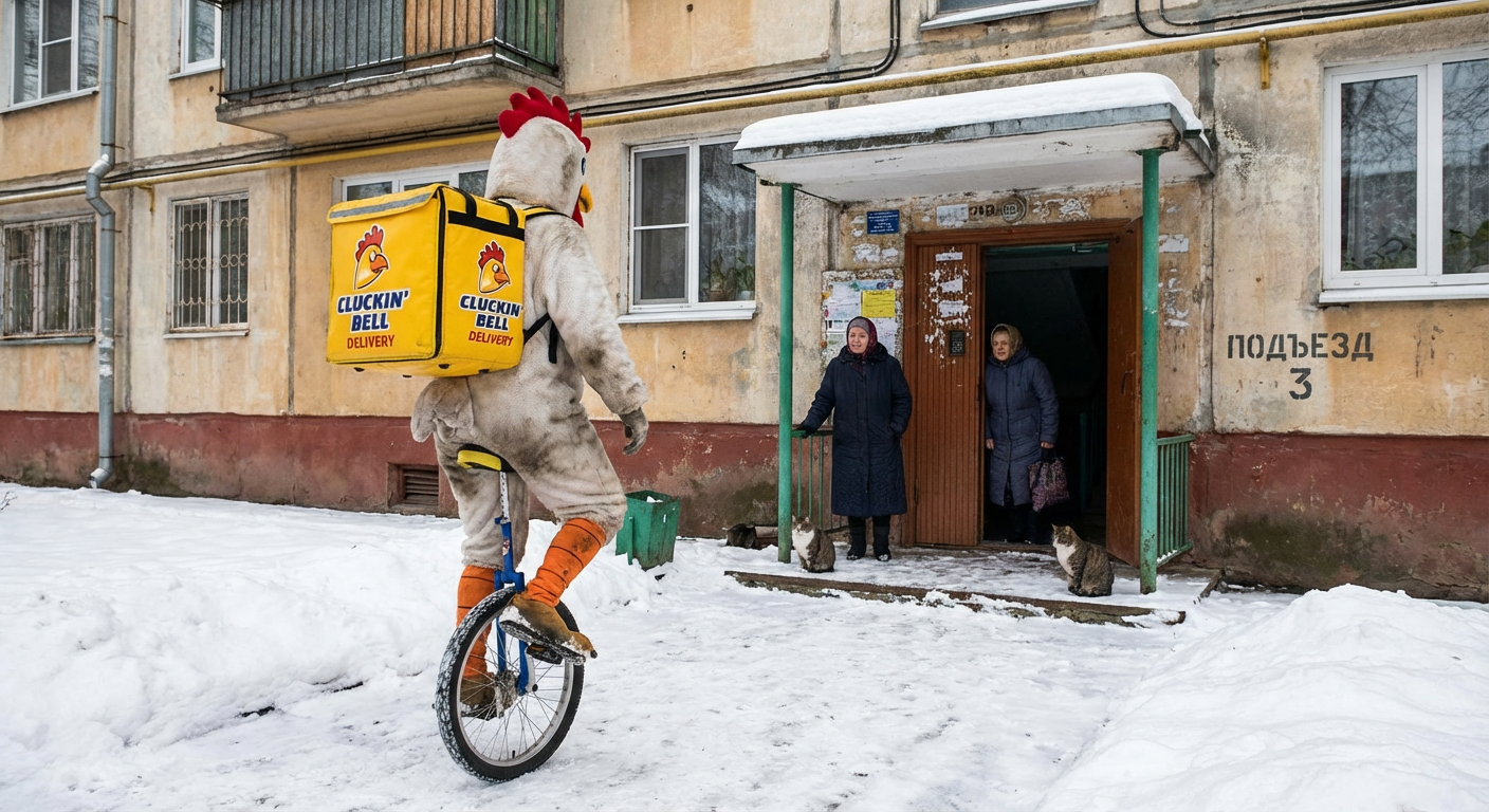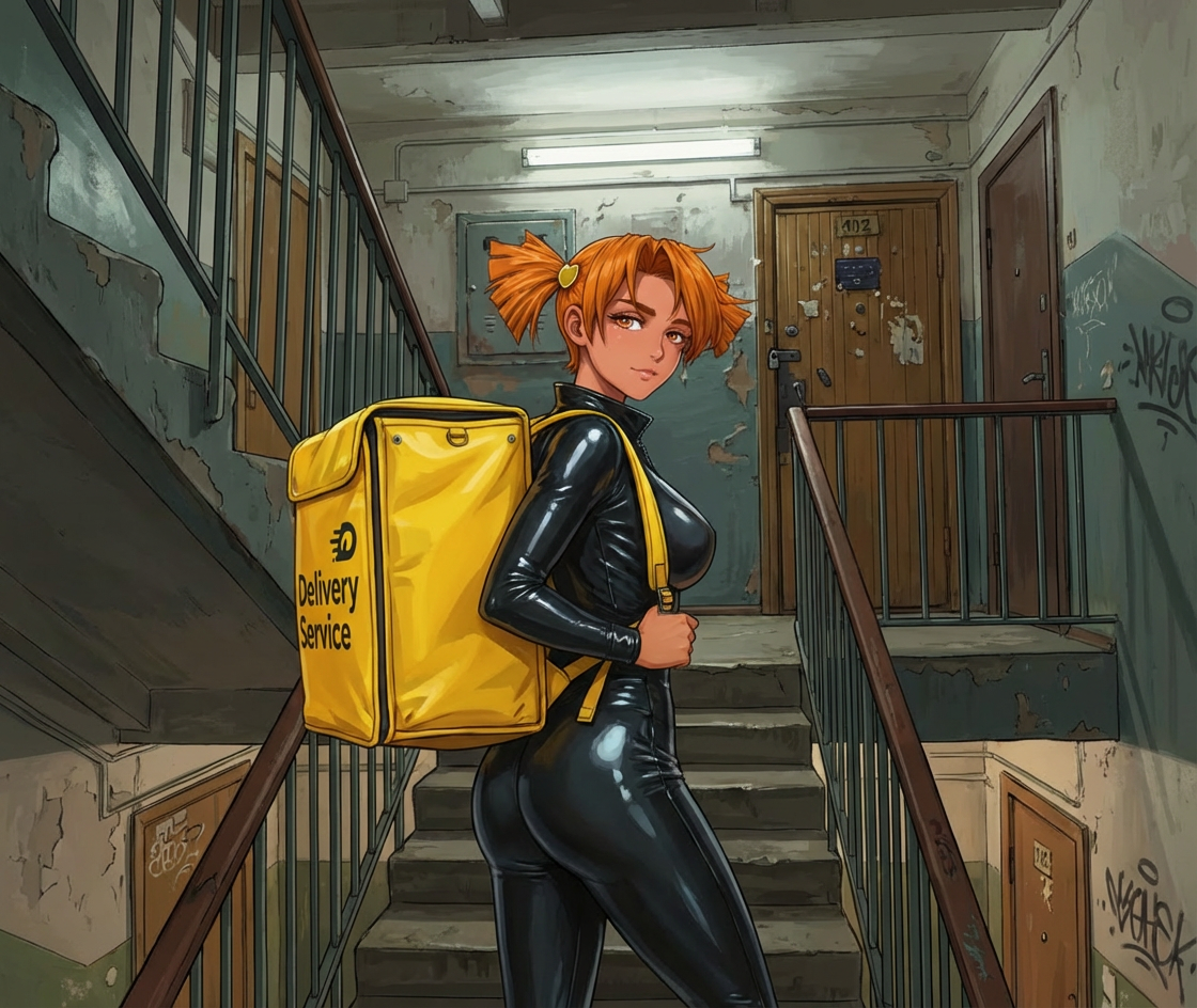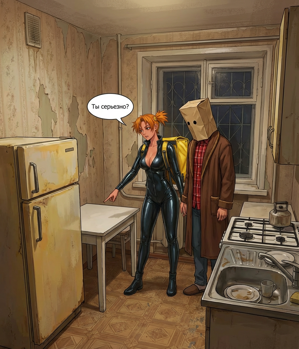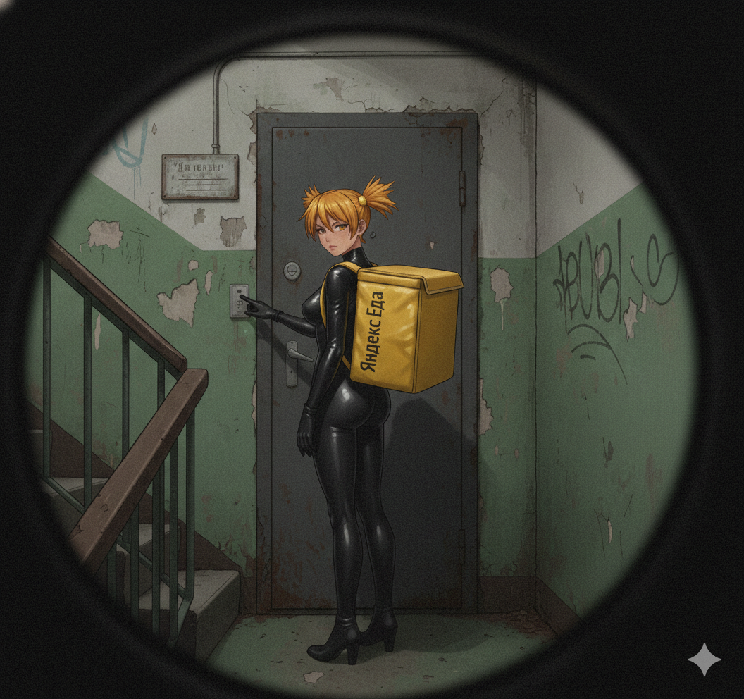>>328693226 (OP) А можете сделать вид через глазок на лестничную клетку хрущевки, там стоит Алиса а костюме пикрил с рюкзаком Яндекс доставки и звонит в дверь.