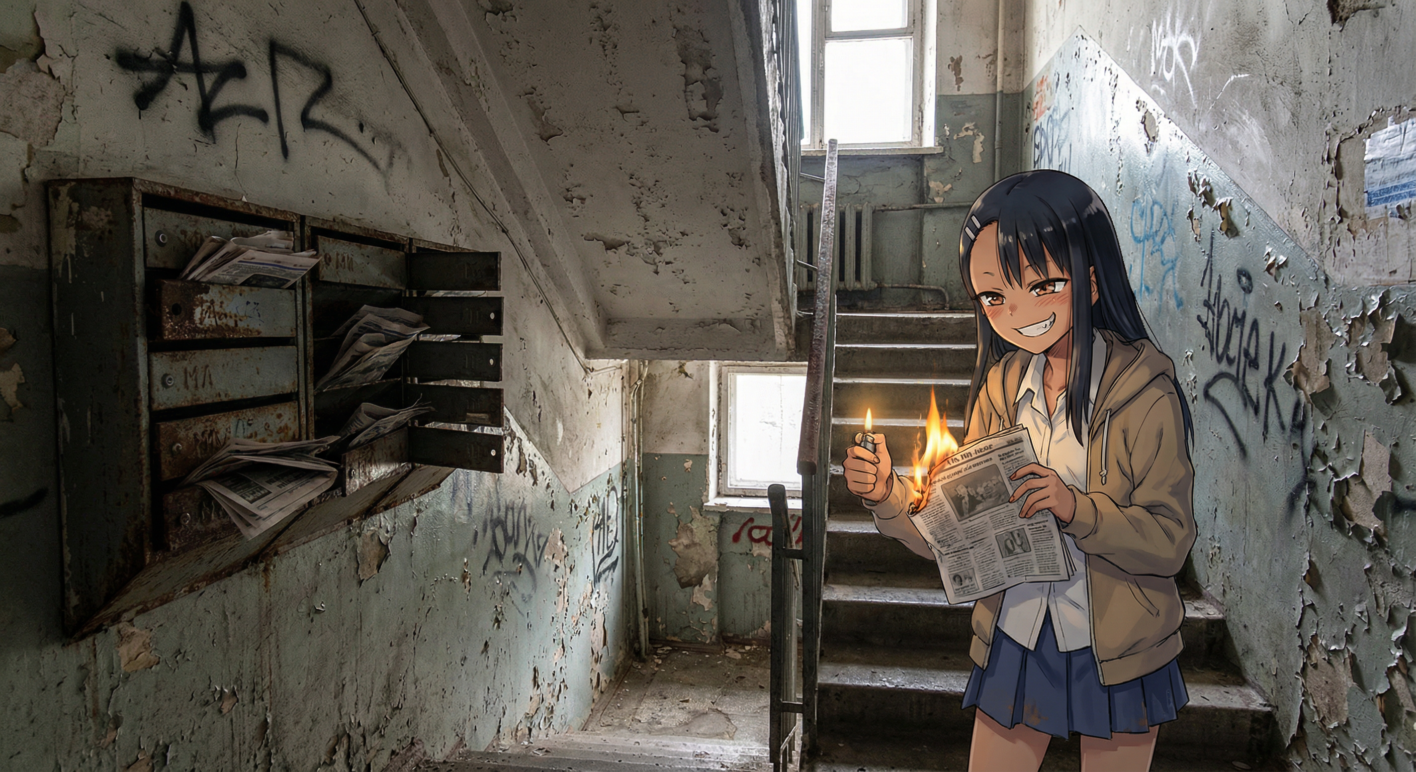 >>328735896 Я таких говноподъездов никогда в жизни не видел. Даже в 90ые... Это где-нибудь где война идет и стенка рухнула. Нарисуйте как Нагатора среди разбомбленых развалин выживает, или в подвале сидит